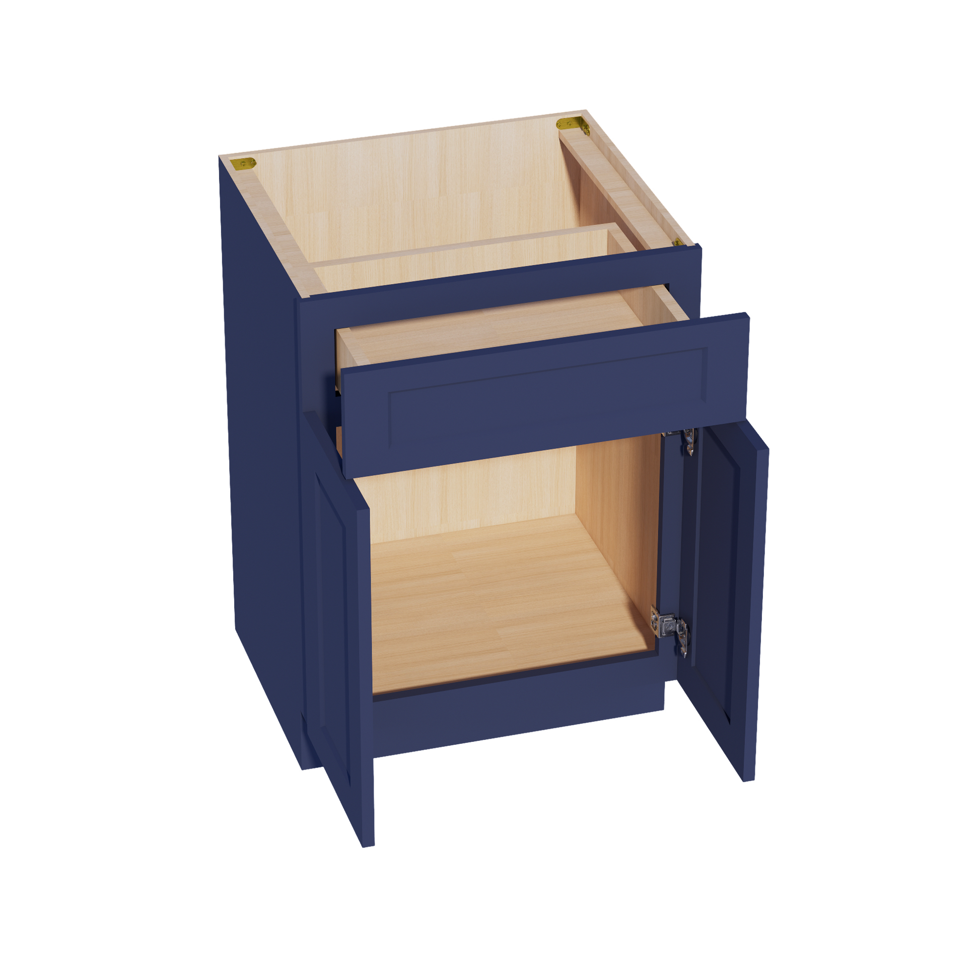 HB-VB2421: Indigo Blue Shaker 24"W x 34-1/2"H x 21"D 2 Doors & 1 Drawer Double Door Vanity Base Cabinets