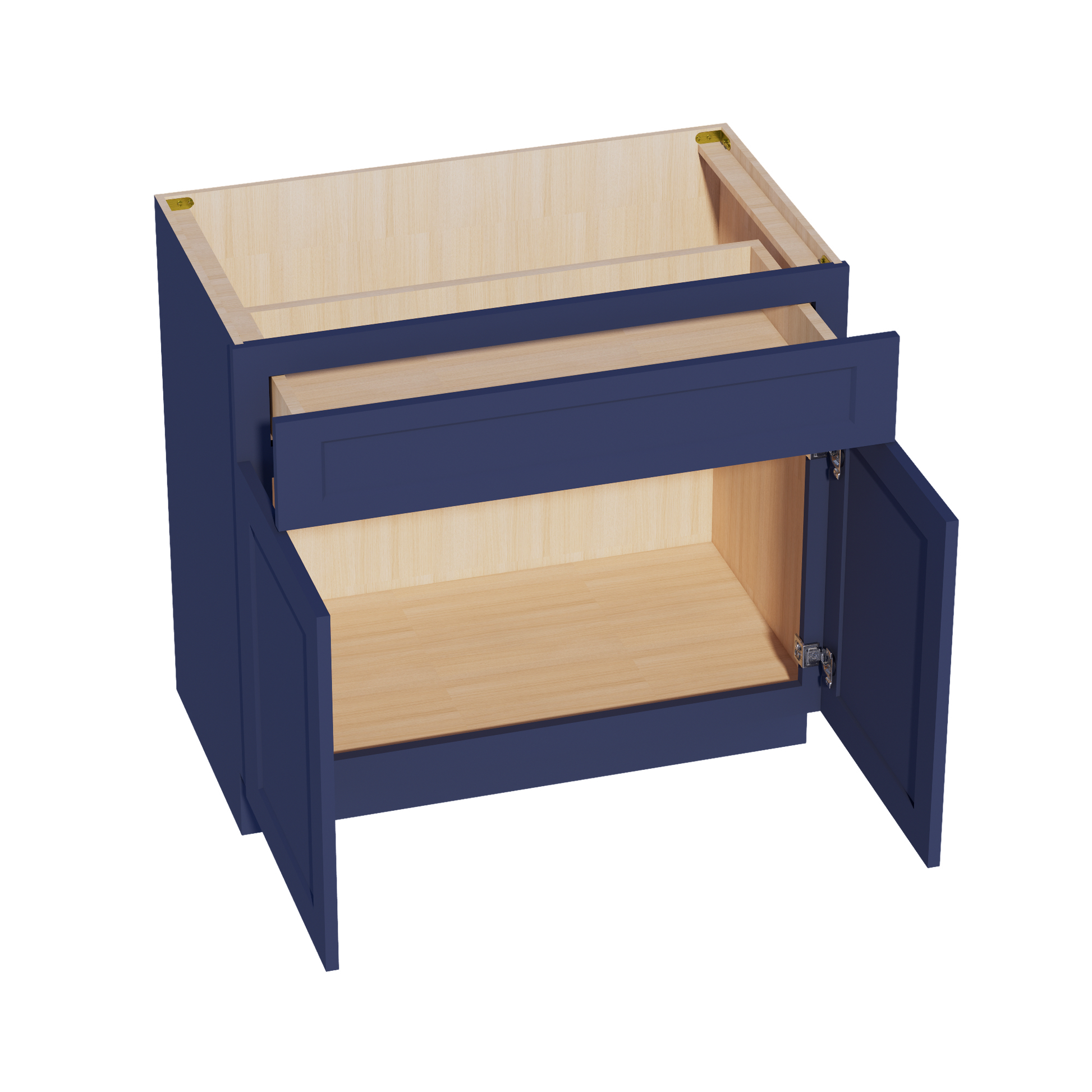 HB-VB3621: Indigo Blue Shaker 36"W x 34-1/2"H x 21"D 2 Doors & 1 Drawer Double Door Vanity Base Cabinets