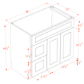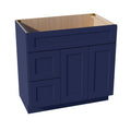HB-VSD3621L: Indigo Blue Shaker 36"W x 34-1/2"H x 21"D 2 Doors & 2 Left Drawers Offset Vanity Sink Base Cabinets