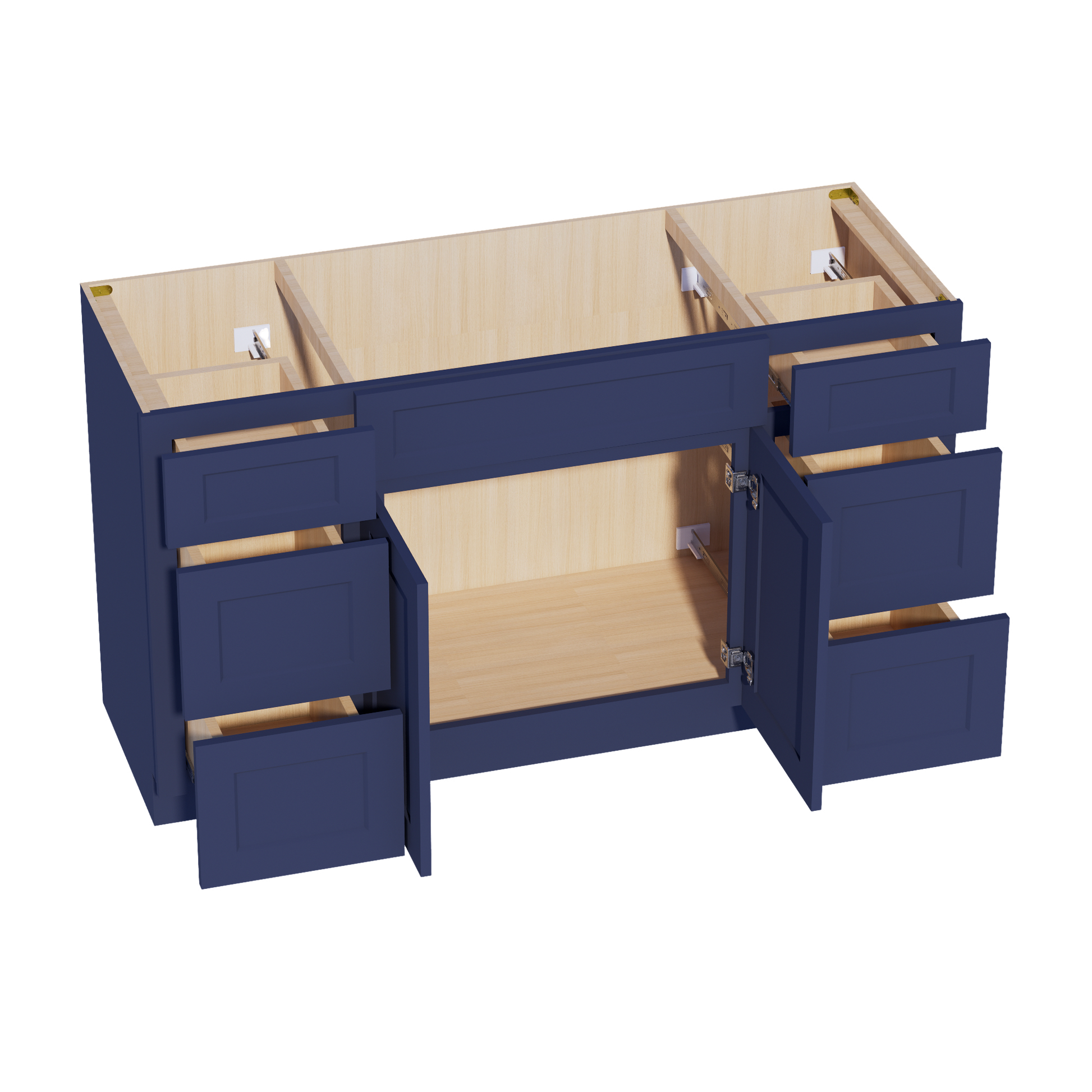 HB-VSD60SINGLE: Indigo Blue Shaker 60"W x 34-1/2"H x 21"D 2 Doors, 6 Drawers & 1 False Drawer Single Sink Vanity Base Combo Cabinets