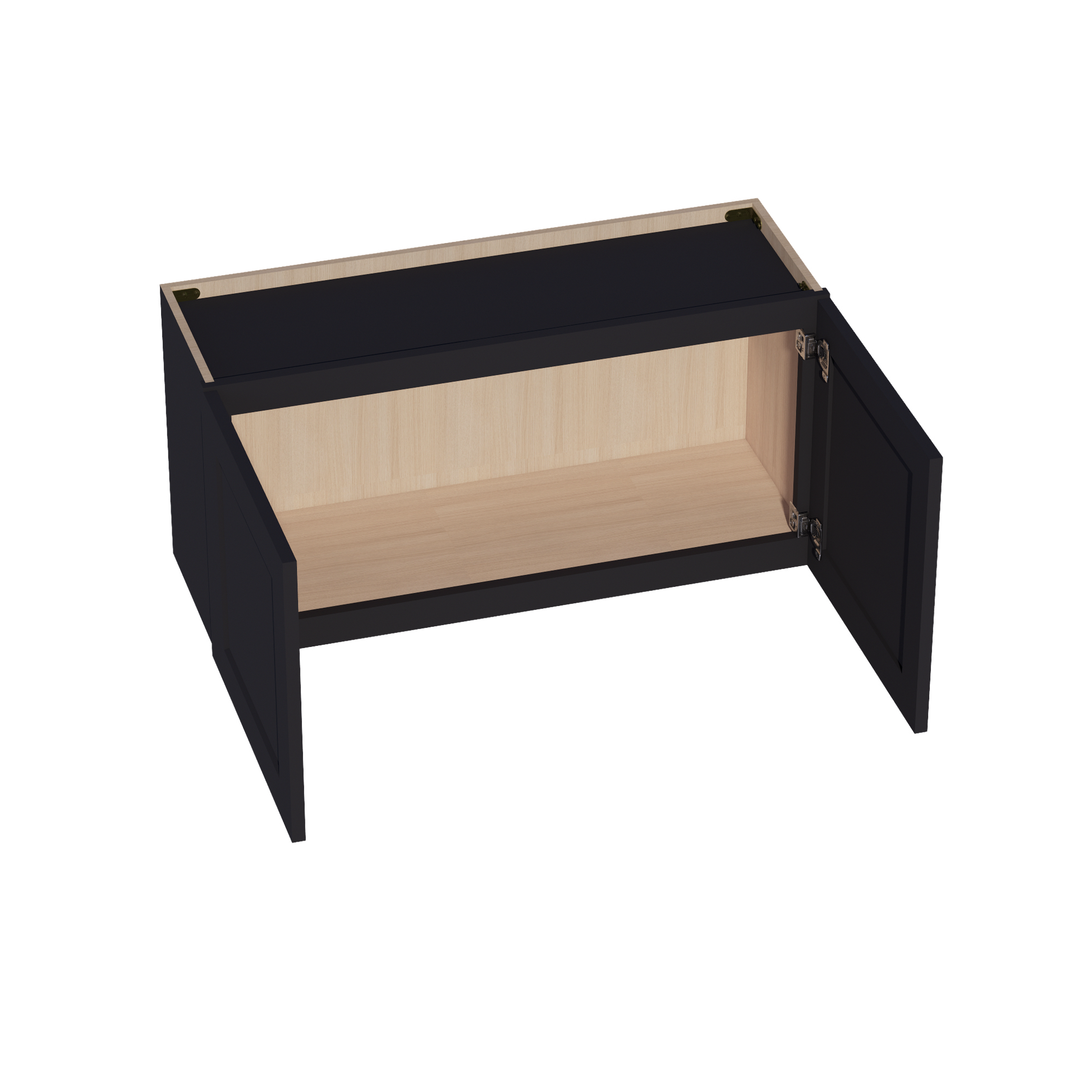 HE-W3618: Ebony Black Shaker 36"W x 18"H 2 Doors Standard Wall Bridge Cabinet