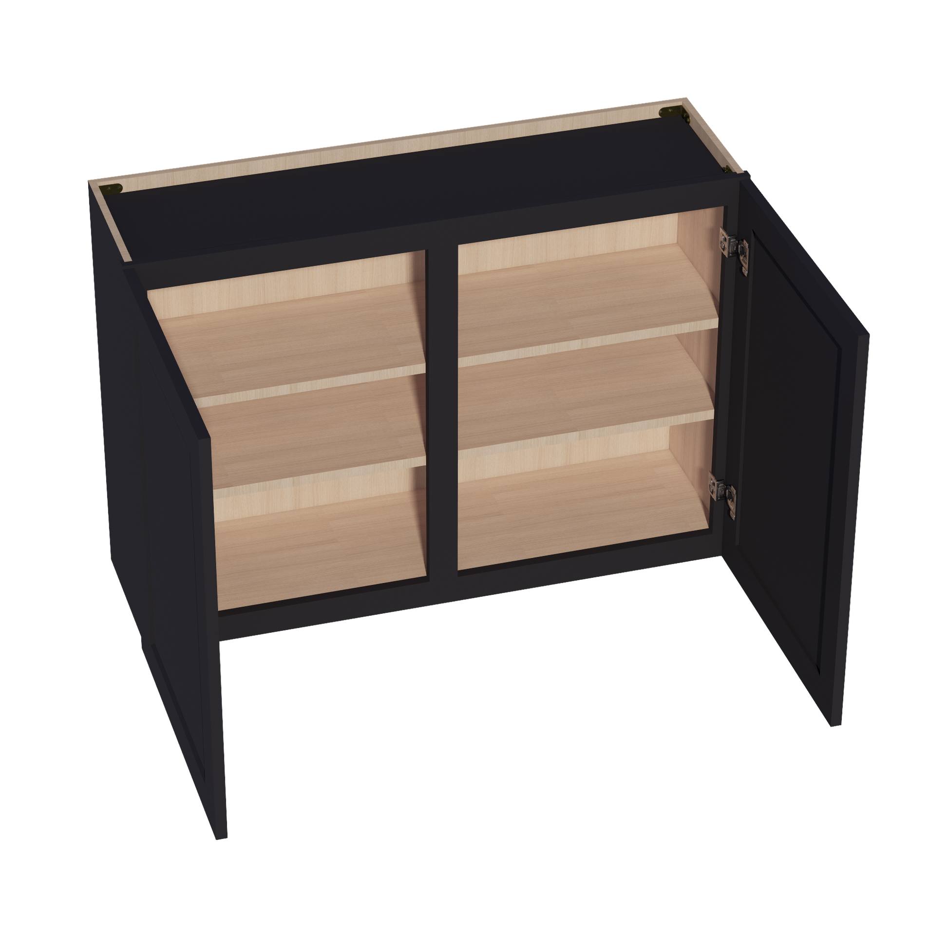 HE-W4230: Ebony Black Shaker 42"W x 30"H 2 Doors & 2 Shelves Standard Wall Cabinet