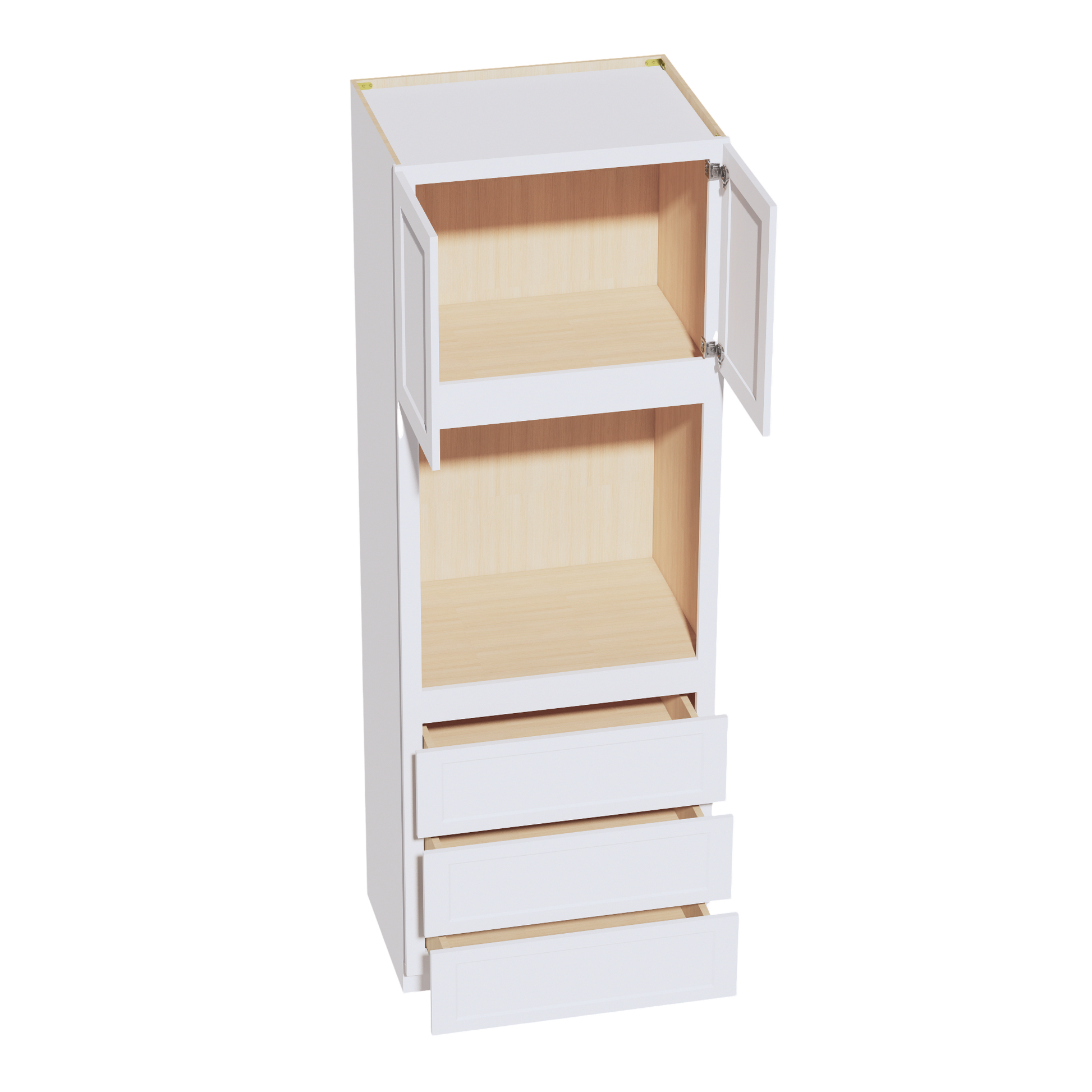 HF-OC3396: Frost White Shaker 33"W x 96"H x 24"D 2 Doors & 3 Drawers Tall Oven Shelf Cabinets
