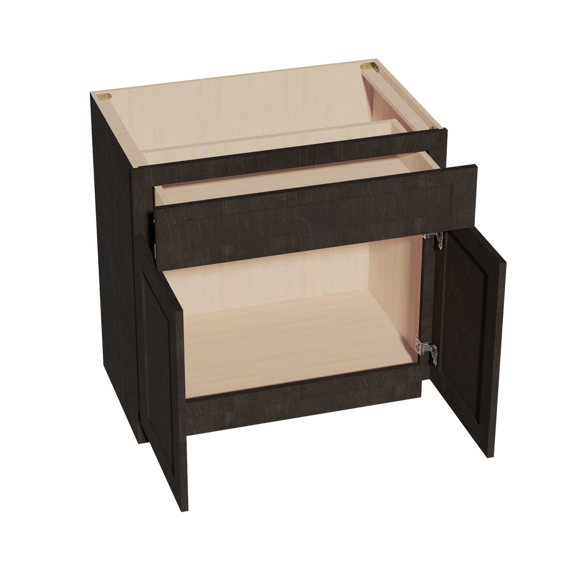 HG-VB3321: Dark Gray Shaker 33"W x 34-1/2"H x 21"D 2 Doors & 1 Drawer Double Door Vanity Base Cabinets