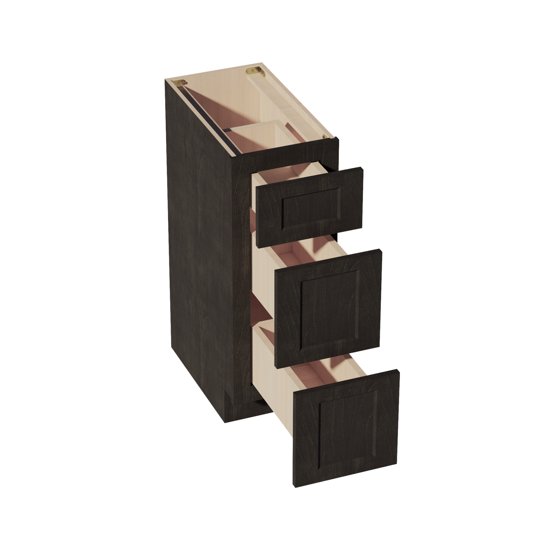 HG-VDB1221: Dark Gray Shaker 12"W x 34-1/2"H x 21"D 3 Drawers Vanity Base Cabinets
