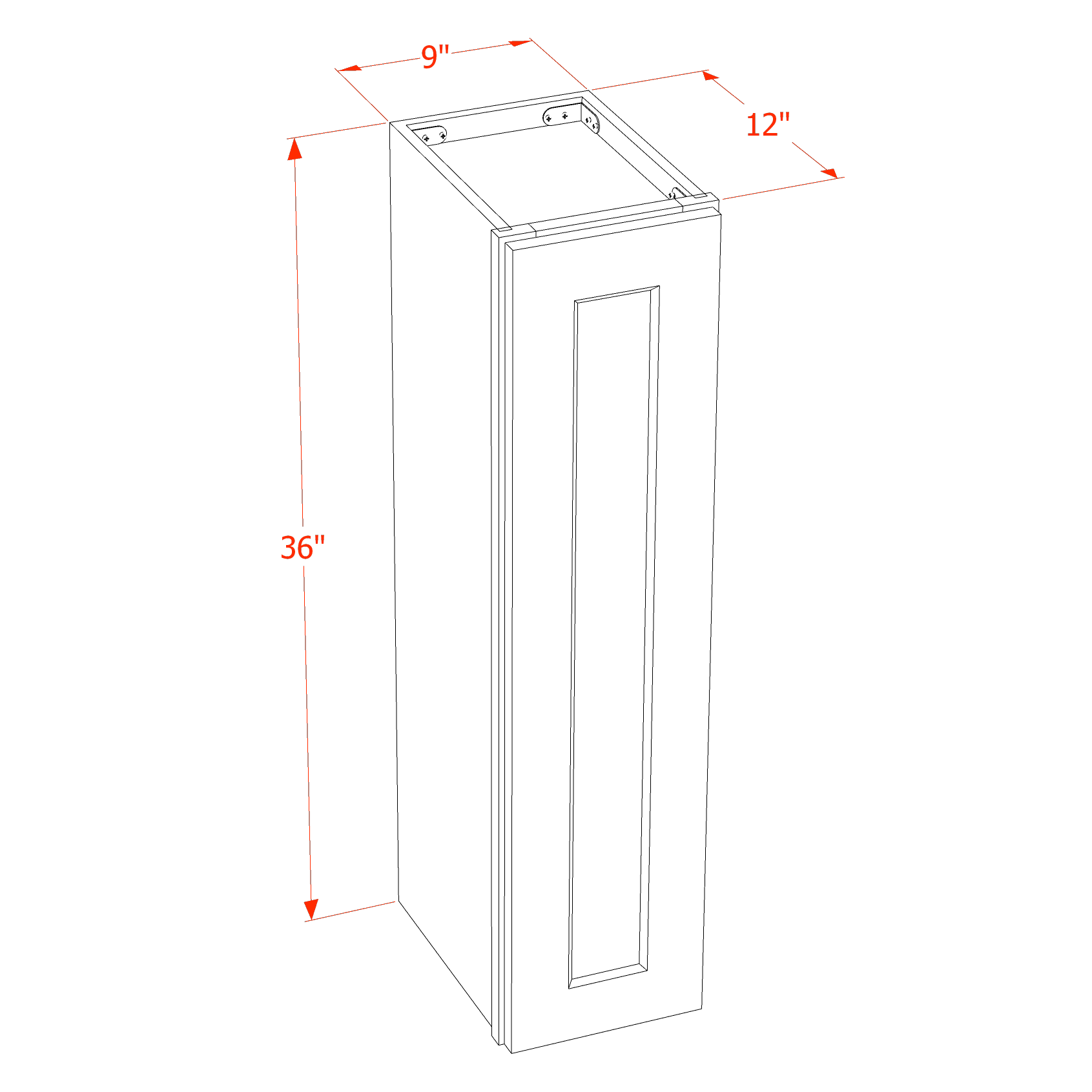 HG-W0936: Dark Gray Shaker 09"W x 36"H 1 Door & 2 Shelves Standard Wall Cabinet