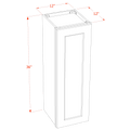 HG-W1236: Dark Gray Shaker 12"W x 36"H 1 Door & 2 Shelves Standard Wall Cabinet