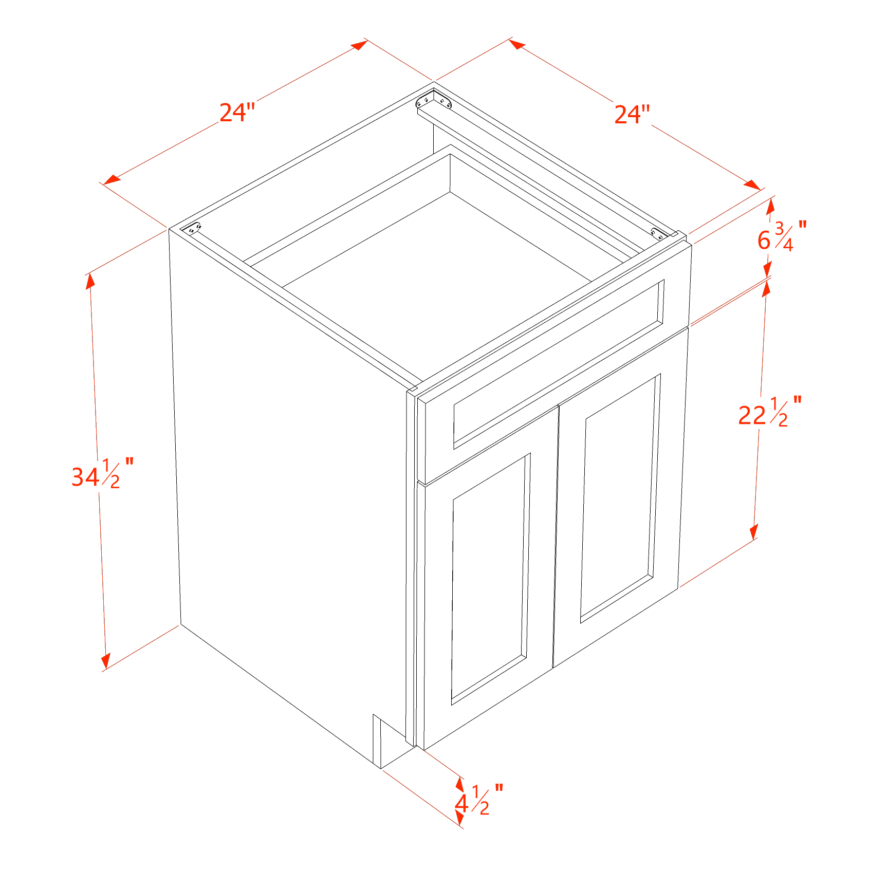HLG-B24: Light Gray Shaker 24" 1 Drawer 2 Doors Standard Base Cabinet