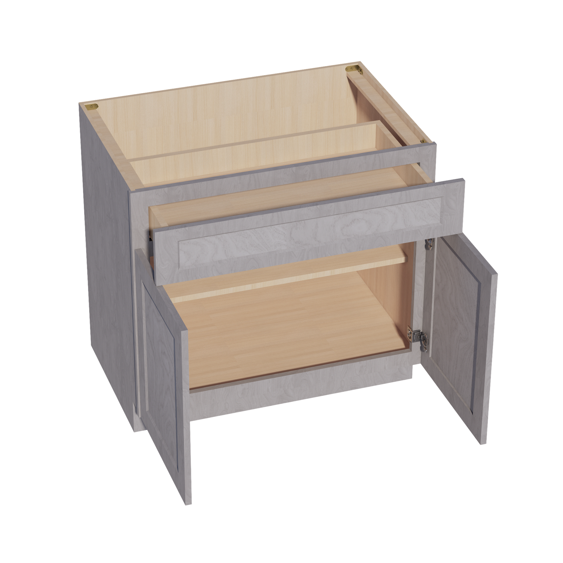 HLG-B36: Light Gray Shaker 36" 1 Drawer 2 Doors Standard Base Cabinet