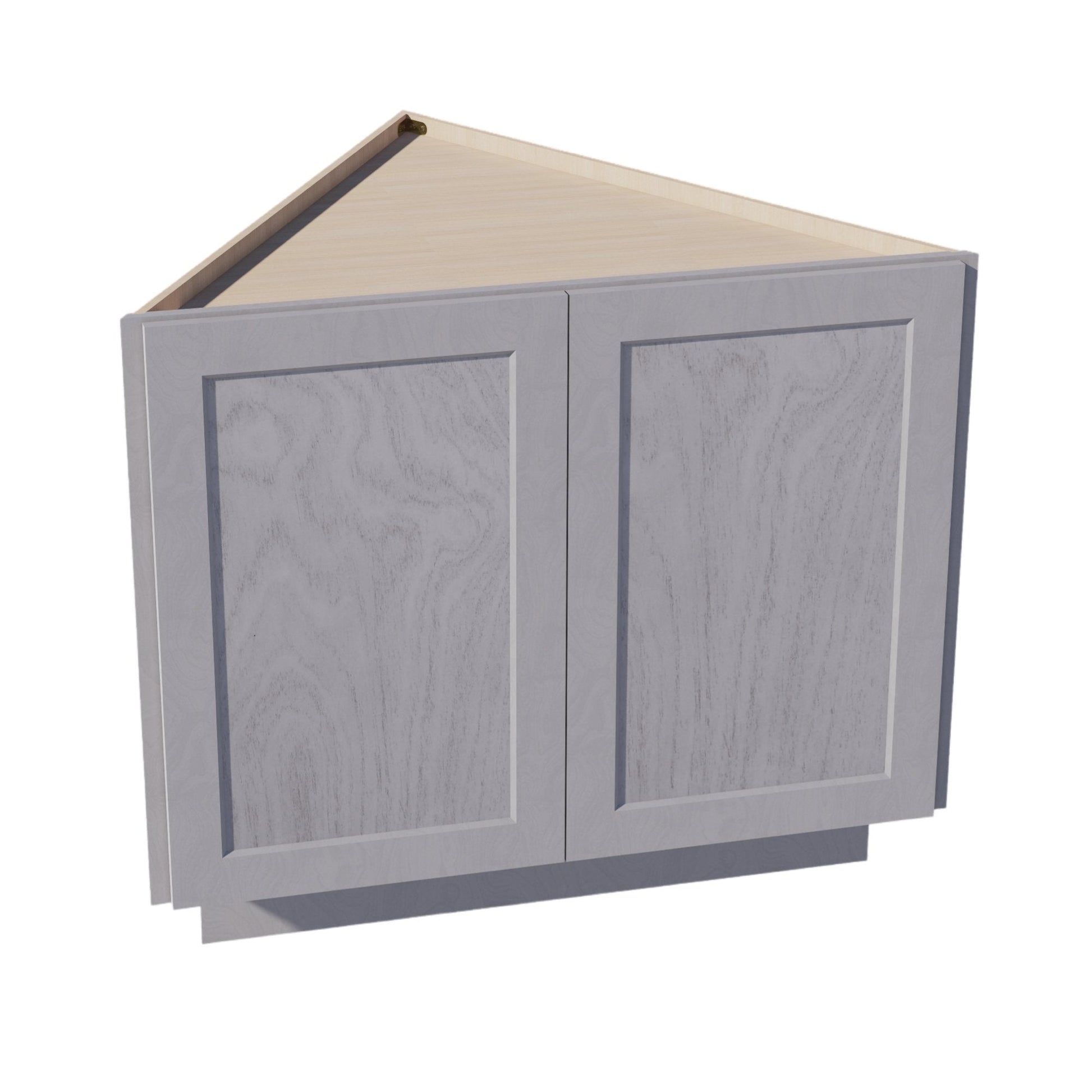 HLG-BEC24: Light Gray Shaker 24" 2 Full Height Door Angled End Base Cabinets