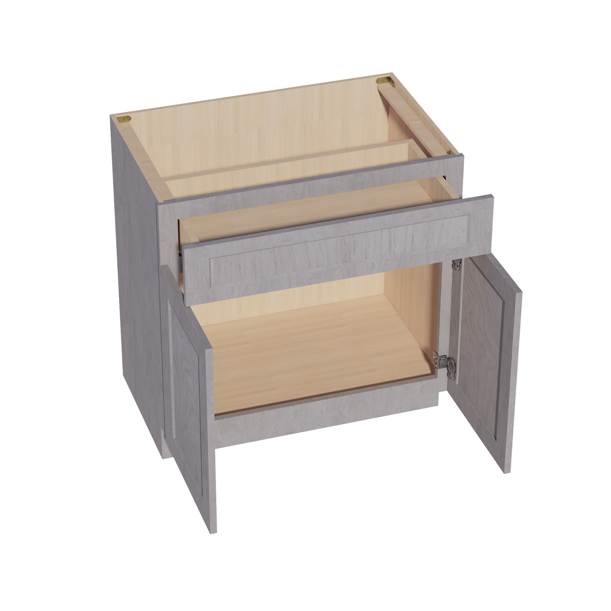 HLG-VB3321: Light Gray Shaker 33"W x 34-1/2"H x 21"D 2 Doors & 1 Drawer Double Door Vanity Base Cabinets