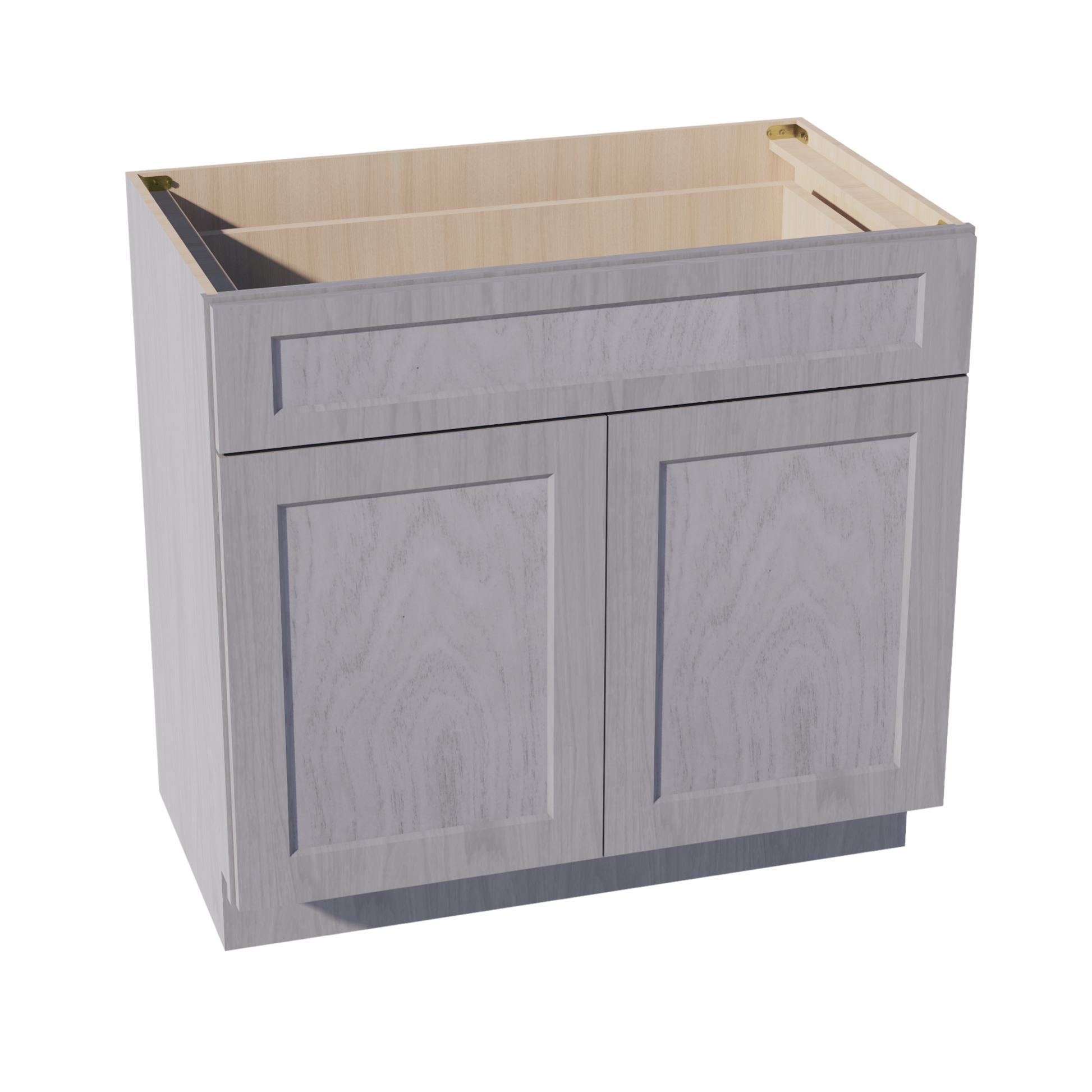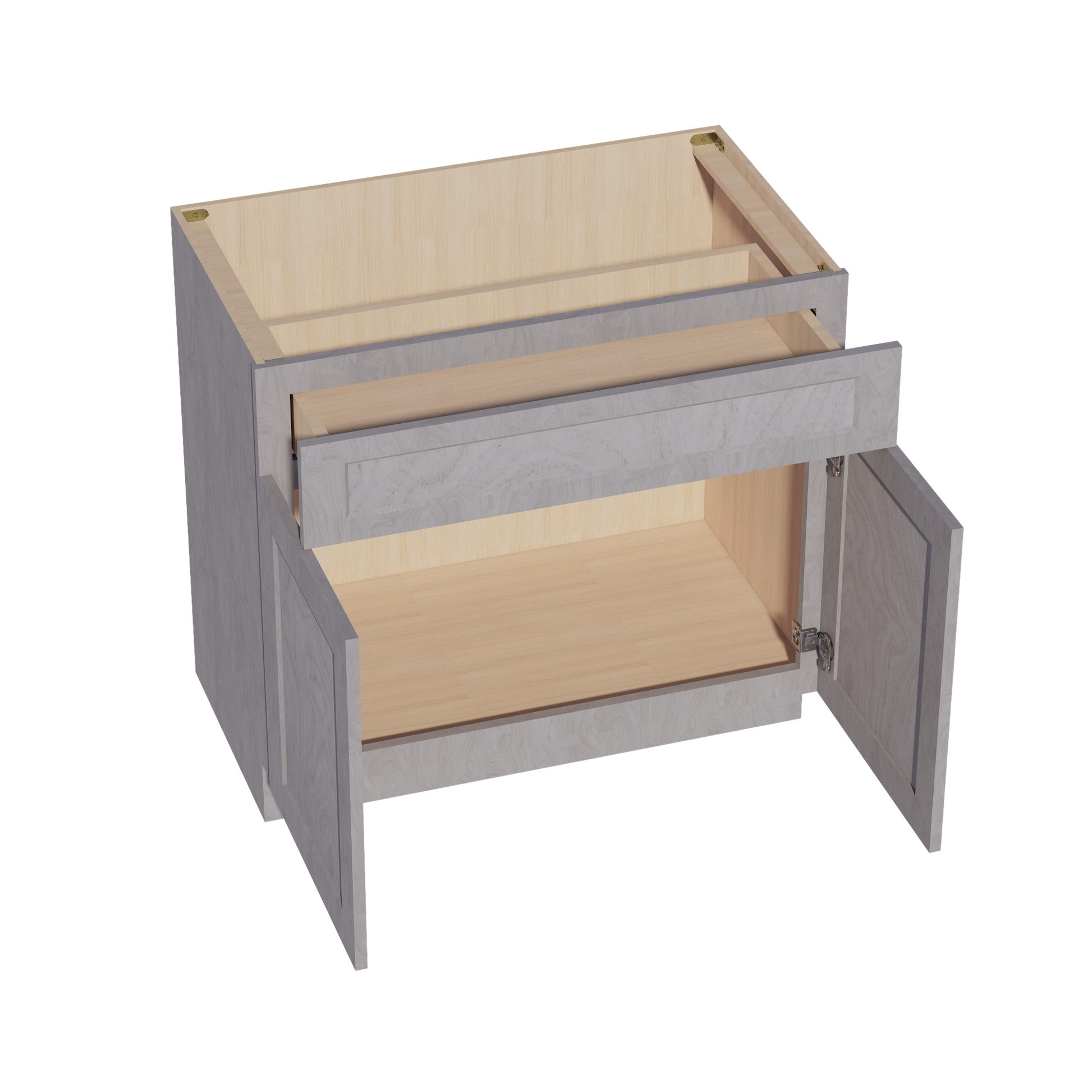 HLG-VB3621: Light Gray Shaker 36"W x 34-1/2"H x 21"D 2 Doors & 1 Drawer Double Door Vanity Base Cabinets