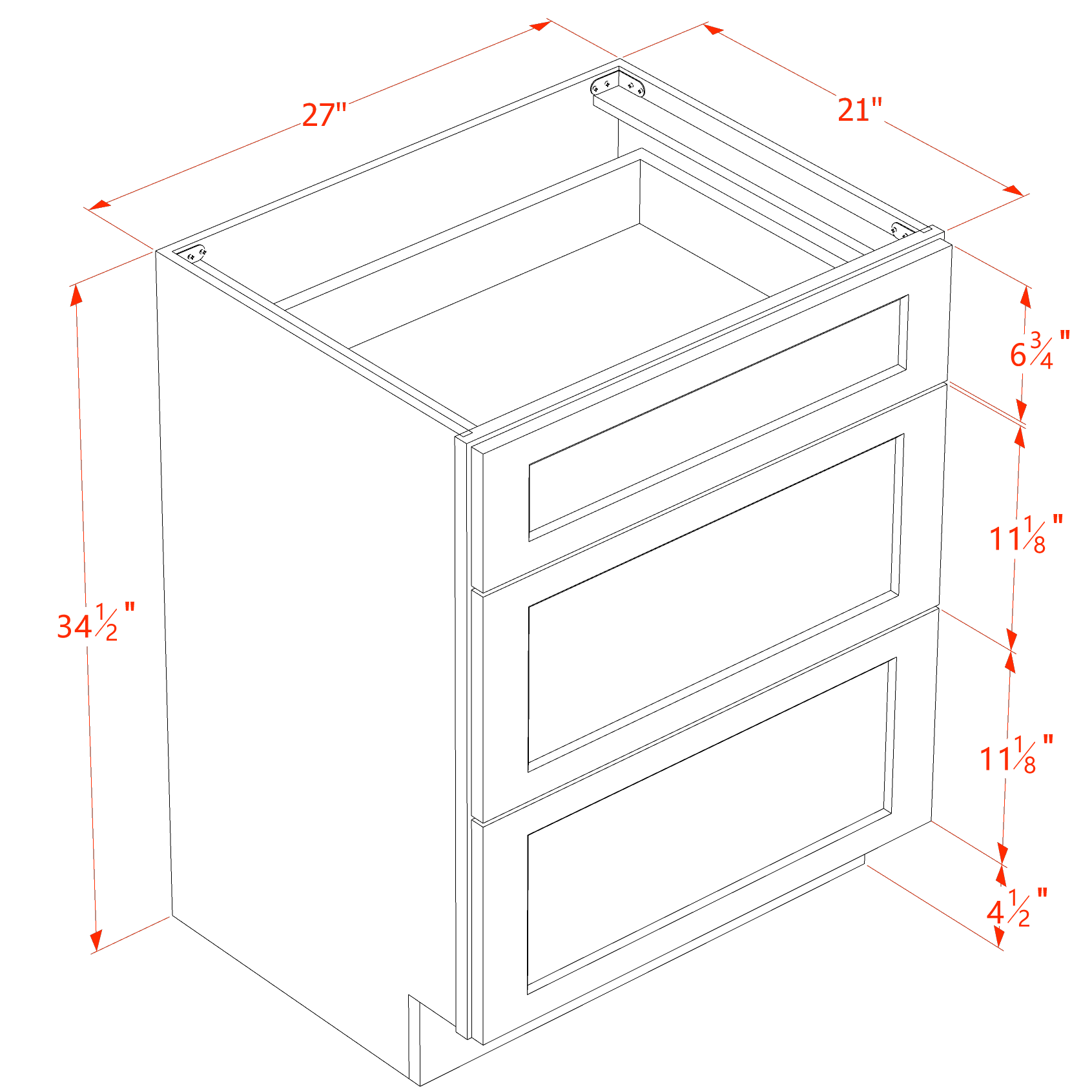 HT-VDB2721:木材摇床 27 英寸宽 x 34-1/2 英寸高 x 21 英寸深 3 抽屉梳妆台底柜