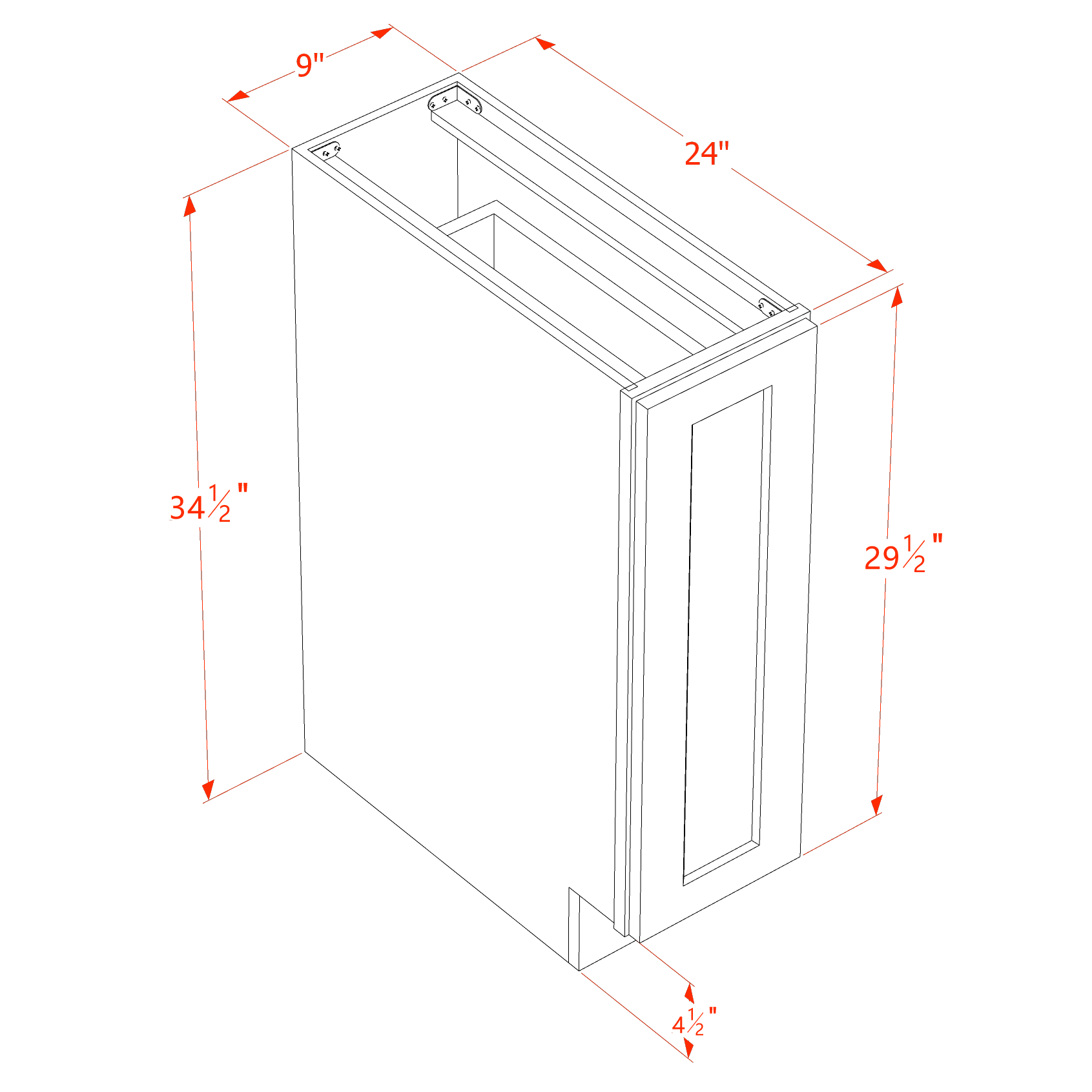 SF-BF09-PO: Frost White Slim Shaker 09" Full Door Pull Out Spice Rack Base Cabinets
