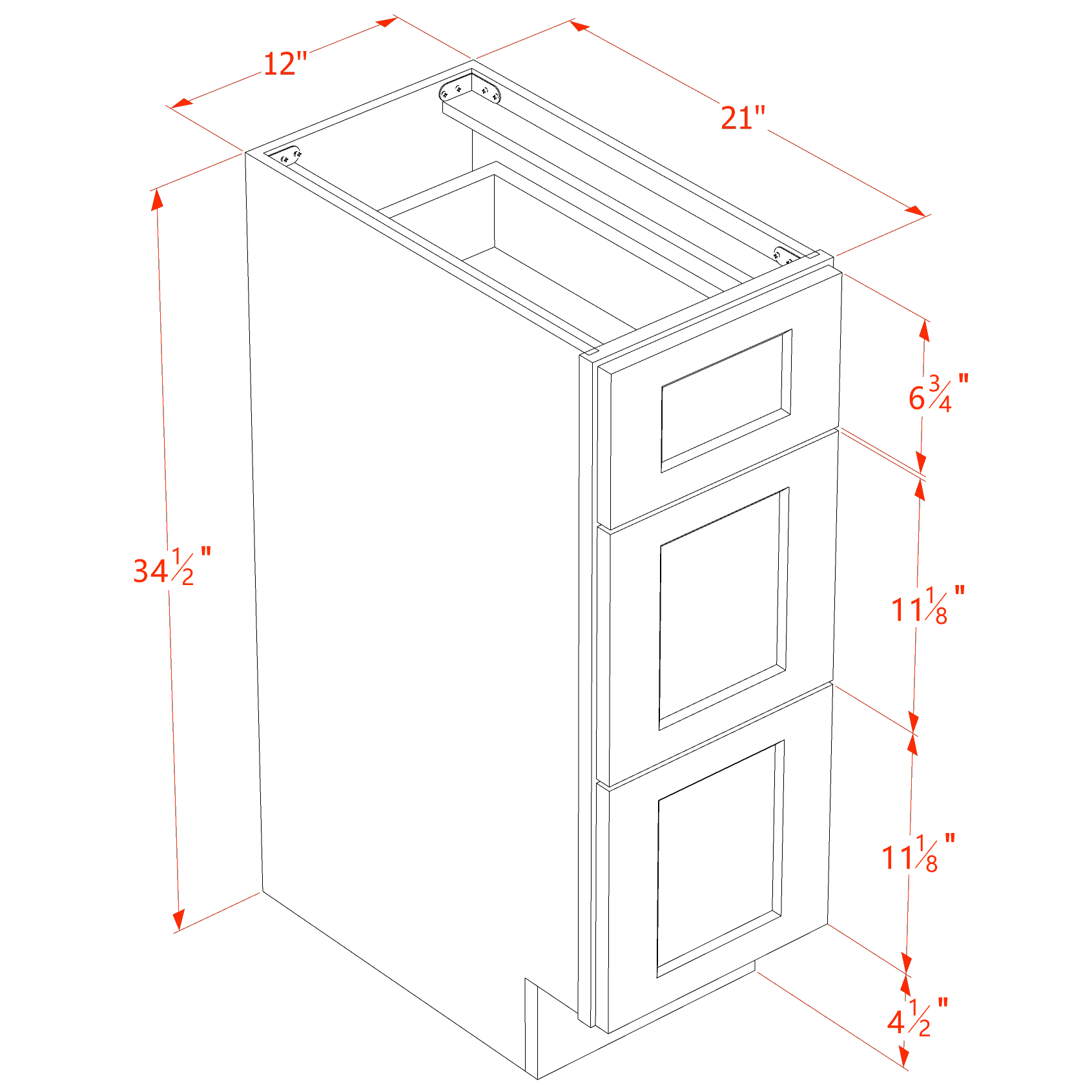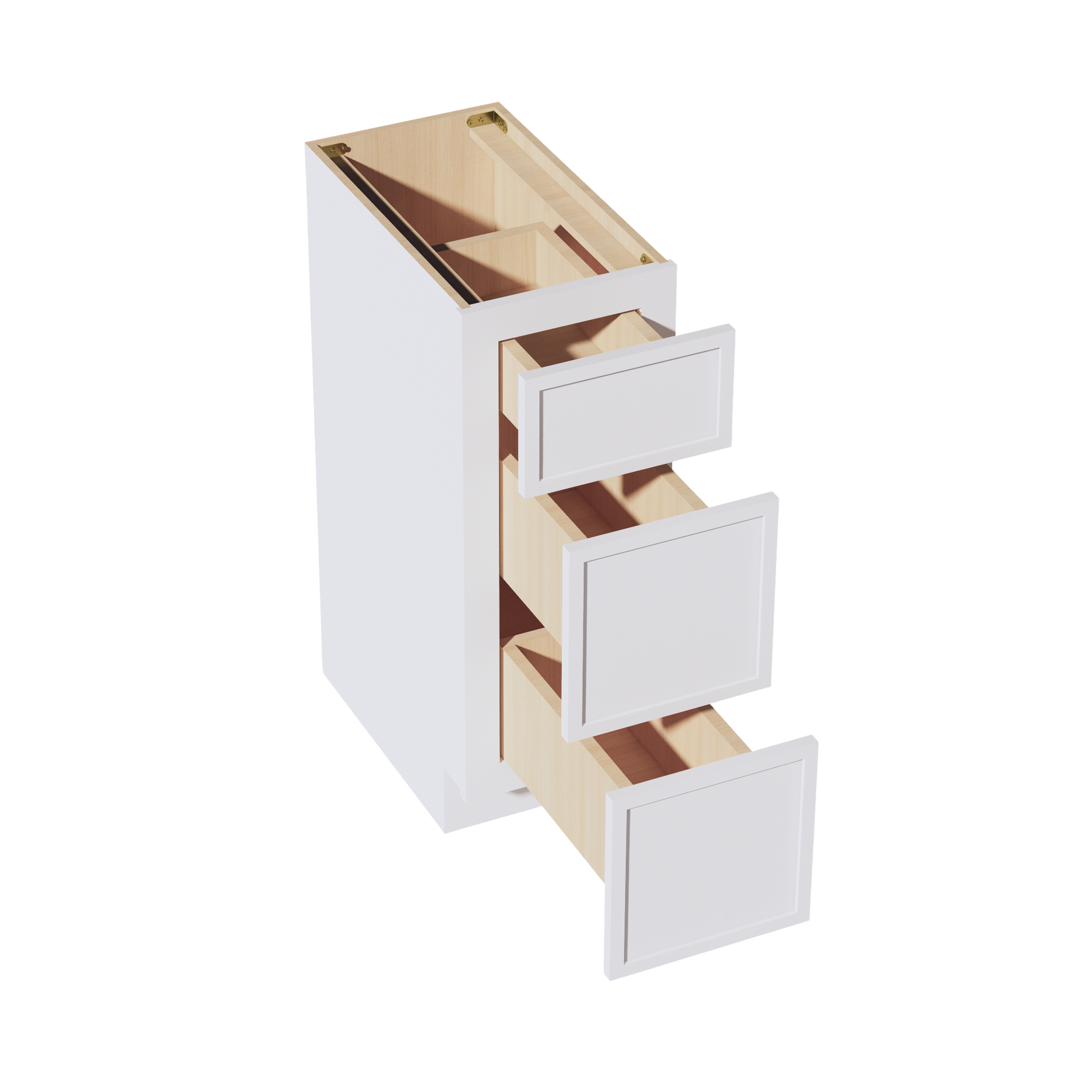 SF-VDB1221: Frost White Slim Shaker 12"W x 34-1/2"H x 21"D 3 Drawers Vanity Base Cabinets