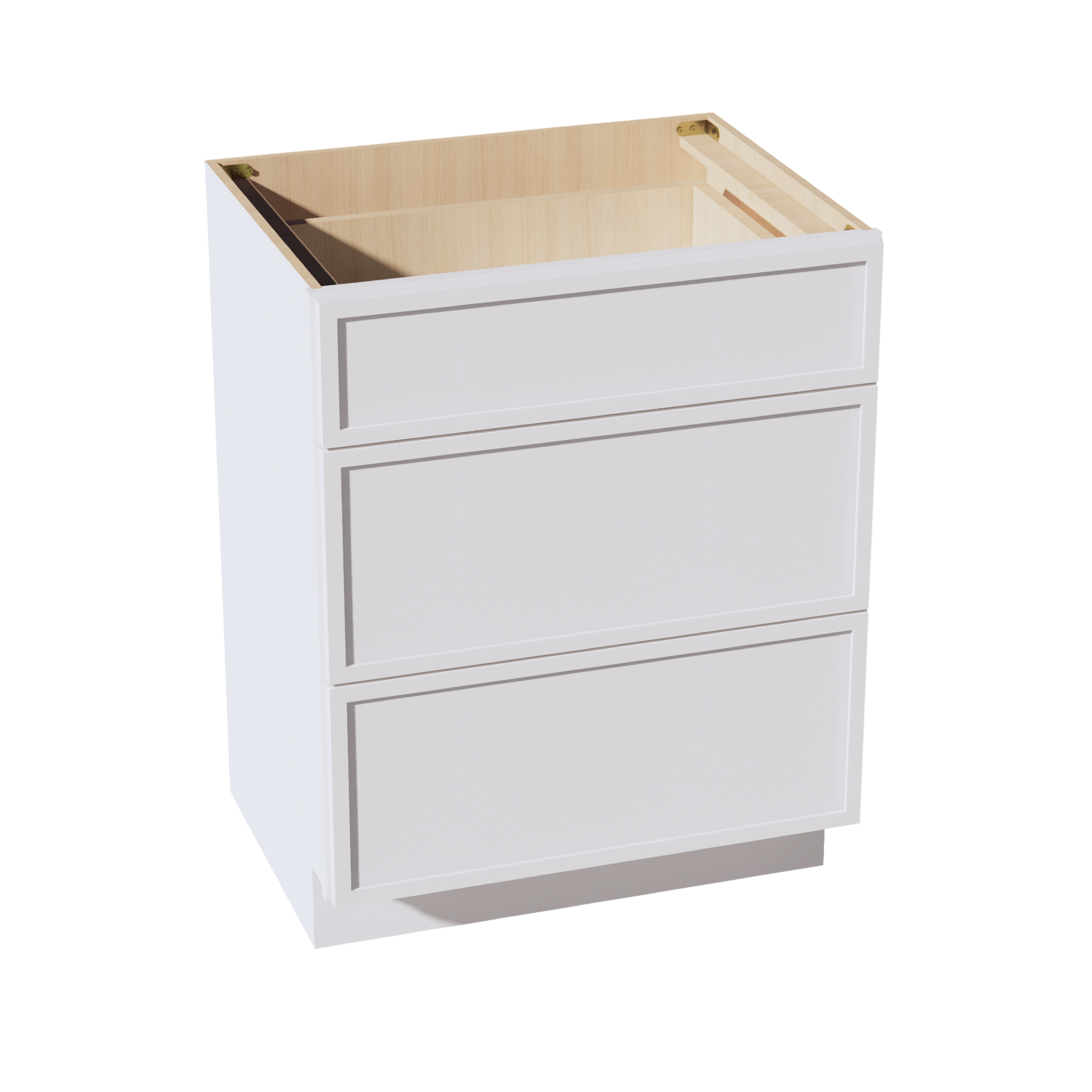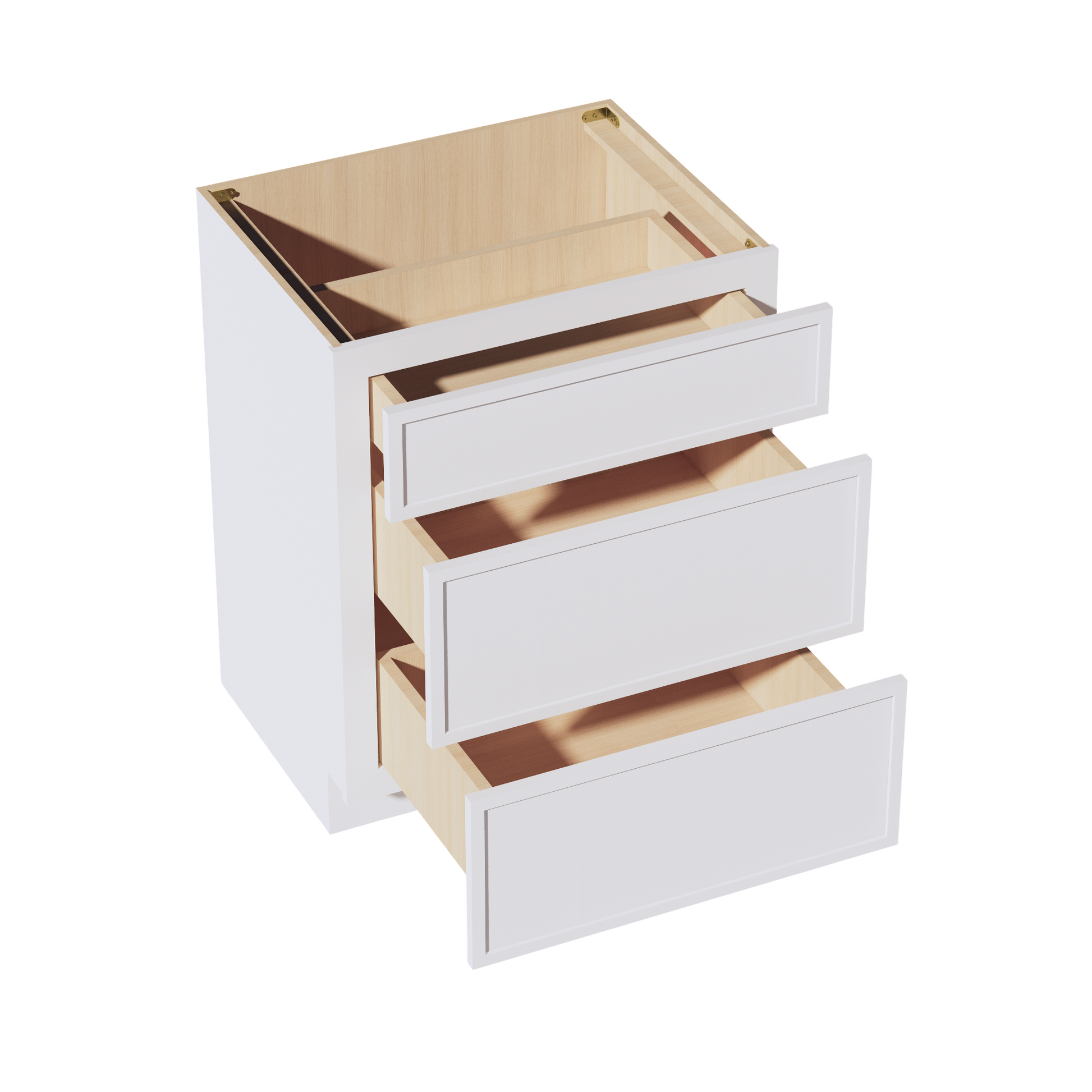 SF-VDB2721: Frost White Slim Shaker 27"W x 34-1/2"H x 21"D 3 Drawers Vanity Base Cabinets