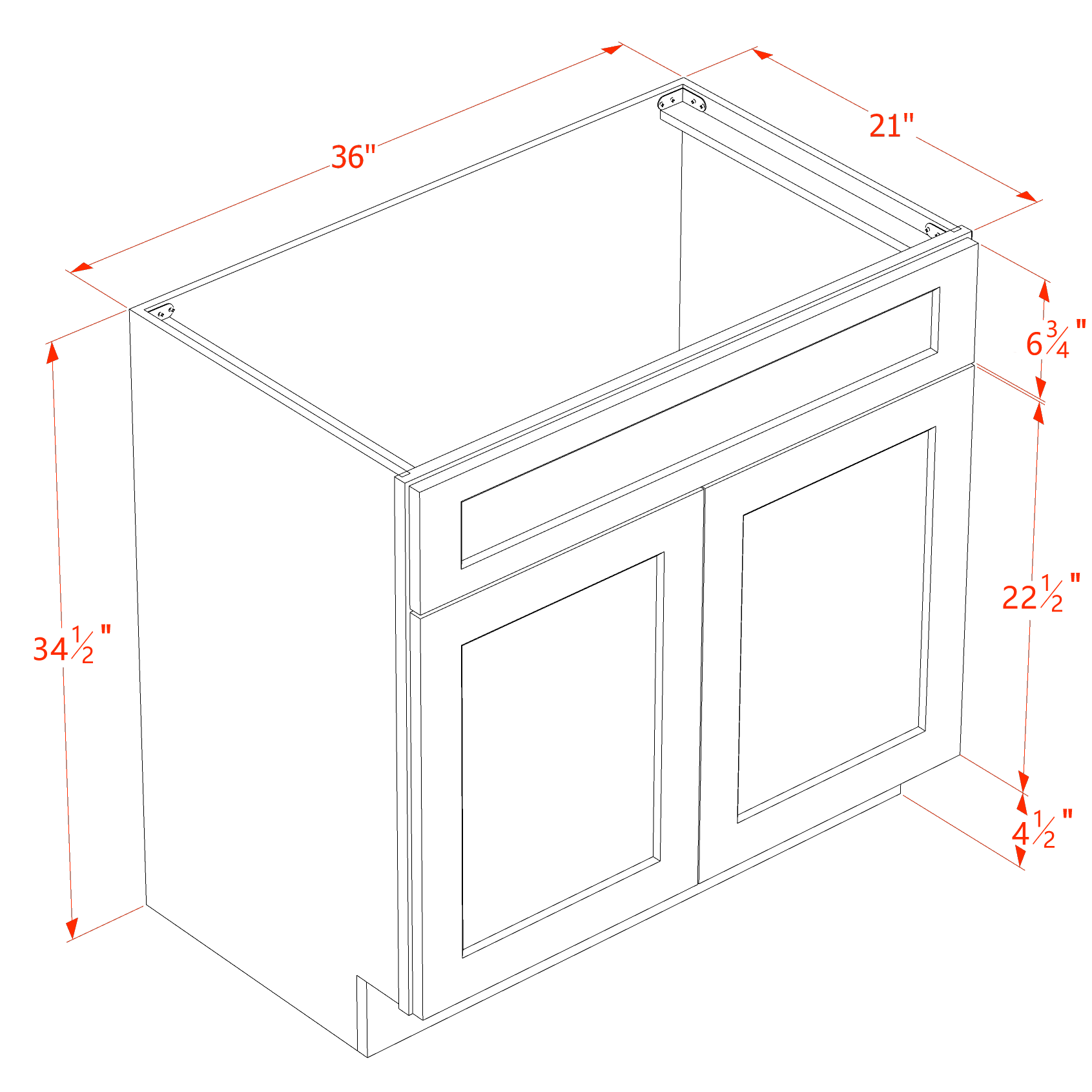 SF-VSB3621: Frost White Slim Shaker 36"W x 34-1/2"H x 21"D 2 Doors & 1 False Drawer Vanity Sink Base Cabinets