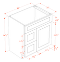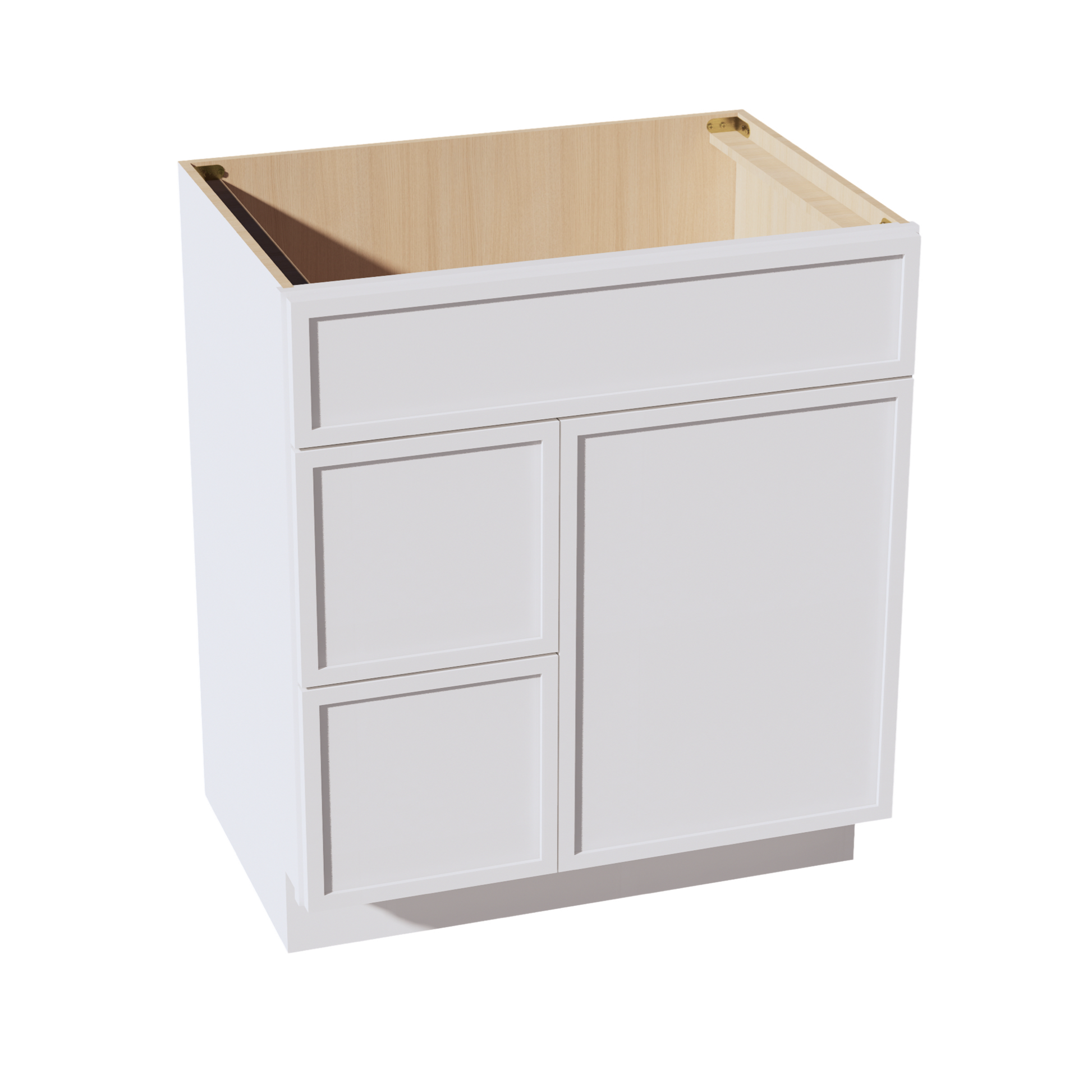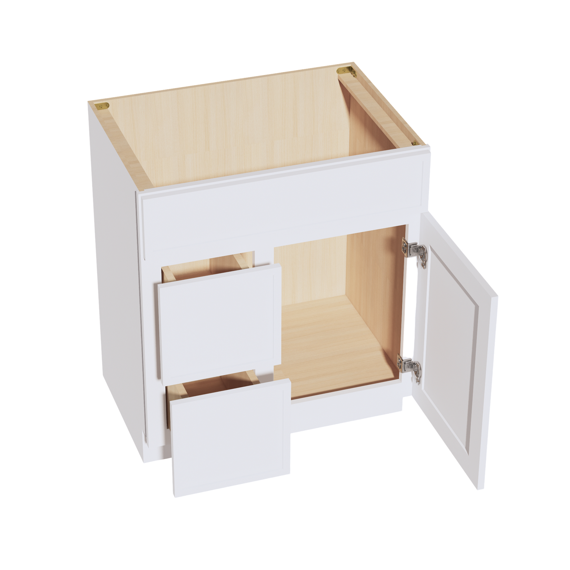 SF-VSD3021L: Frost White Slim Shaker 30"W x 34-1/2"H x 21"D 1 Door & 2 Left Drawers Offset Vanity Sink Base Cabinets