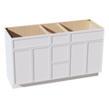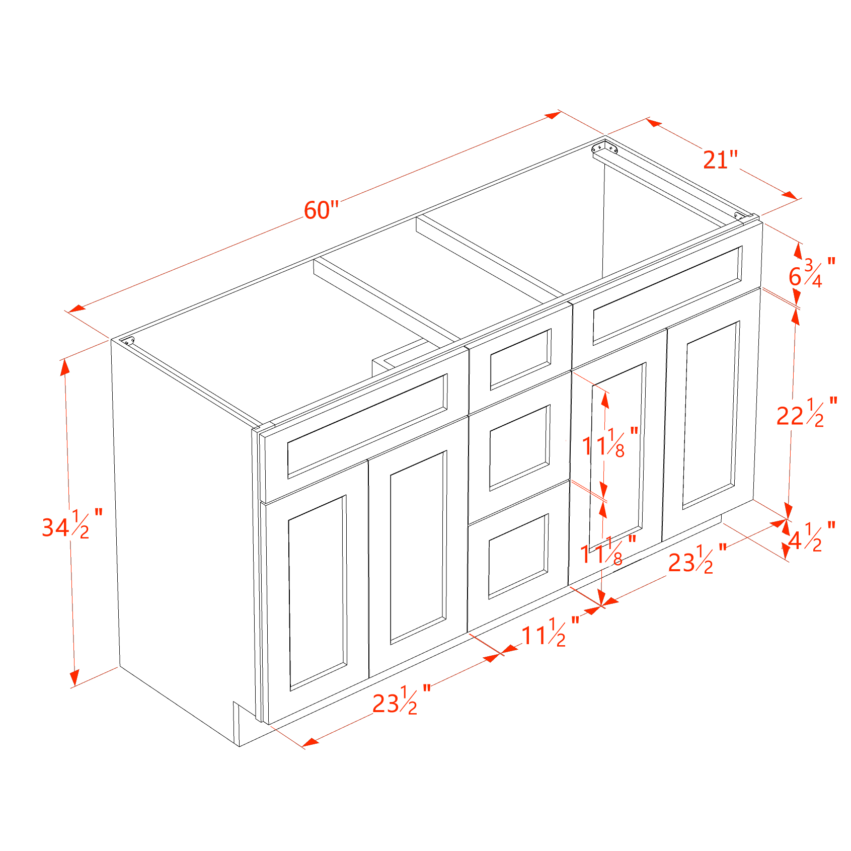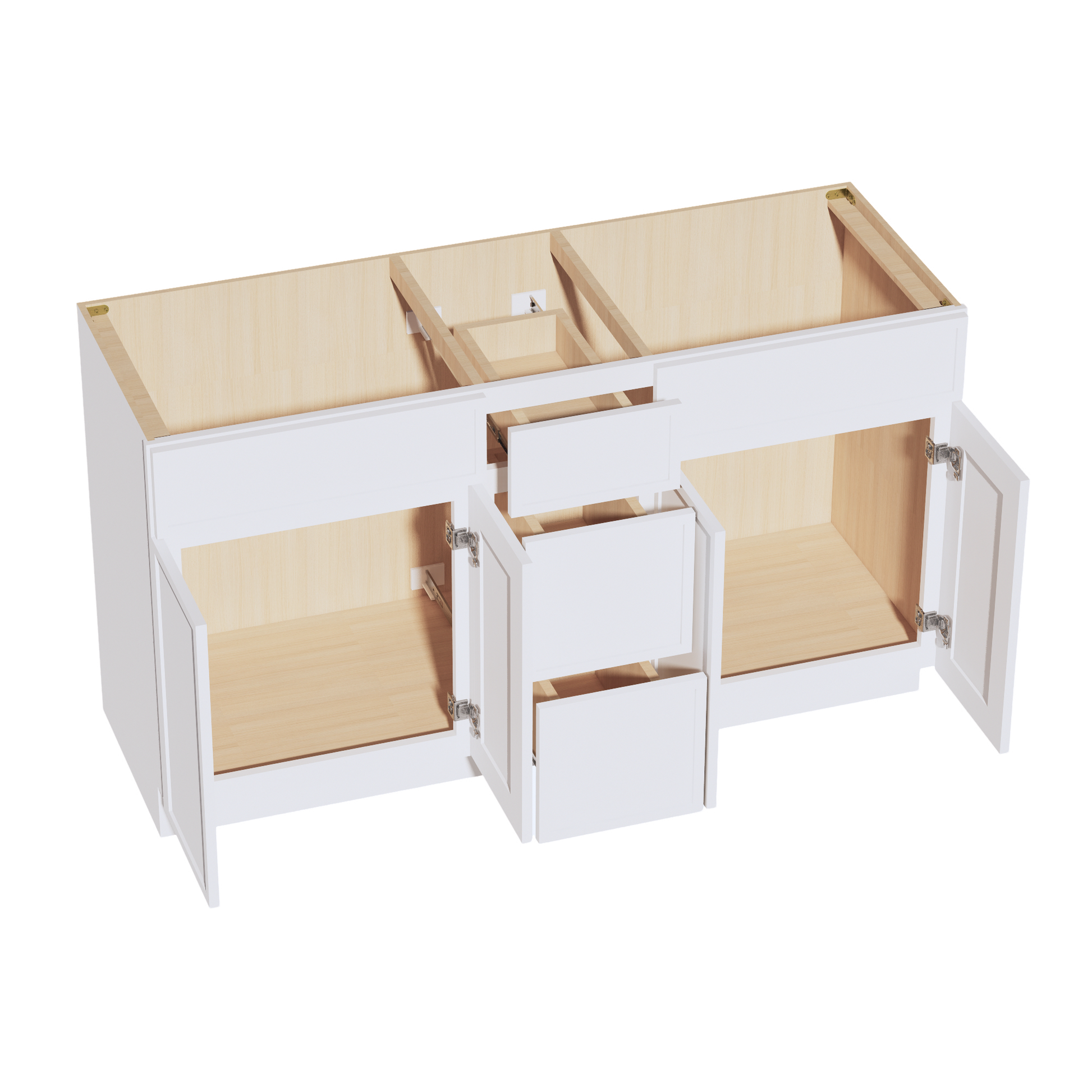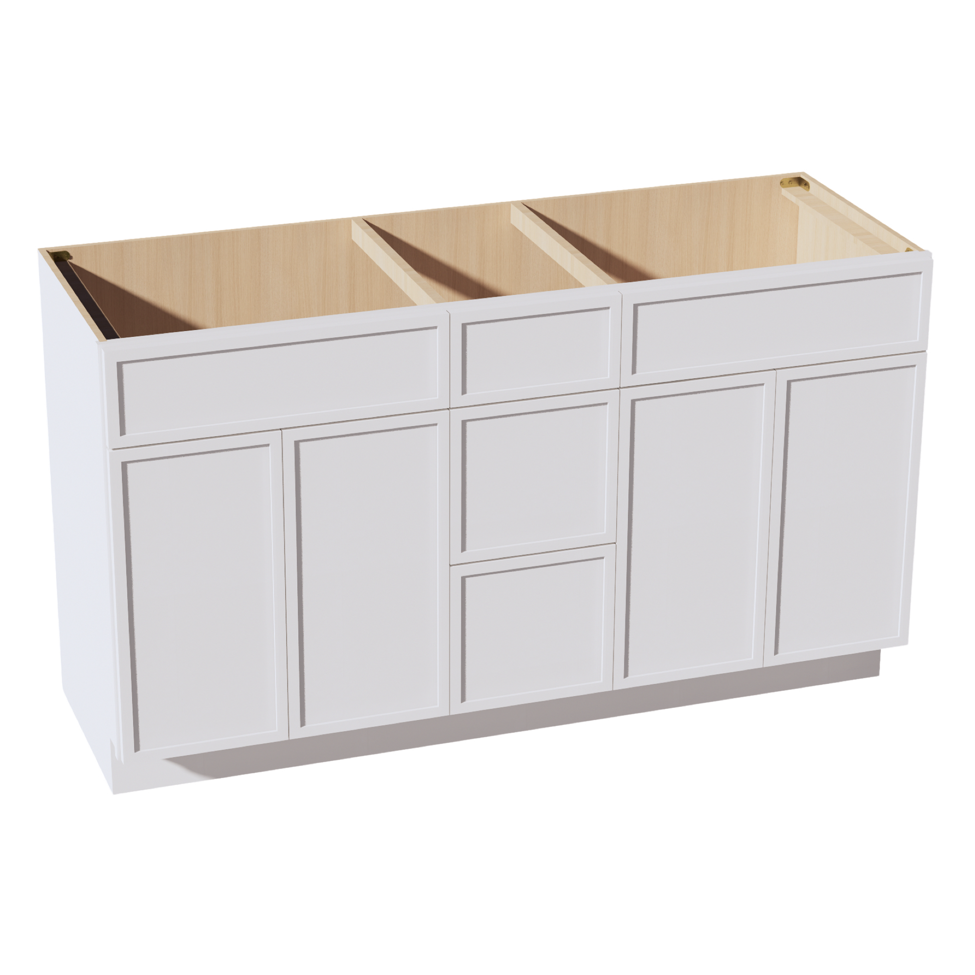 SF-VSD60DOUBLE: Frost White Slim Shaker 60"W x 34-1/2"H x 21"D 4 Doors, 3 Drawers & 2 False Drawers Double Sink Vanity Base Combo Cabinets