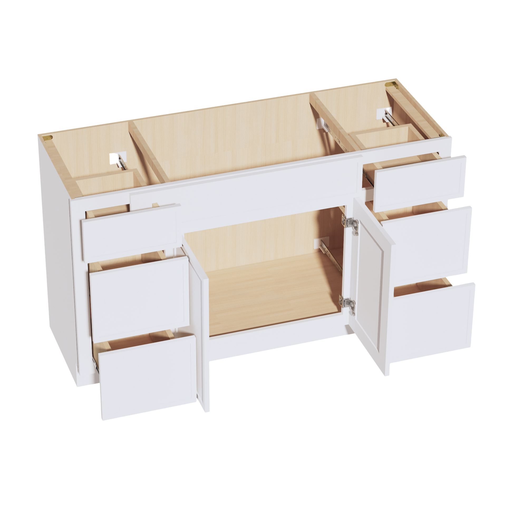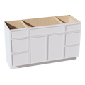 SF-VSD60SINGLE: Frost White Slim Shaker 60"W x 34-1/2"H x 21"D 2 Doors, 6 Drawers & 1 False Drawer Single Sink Vanity Base Combo Cabinets