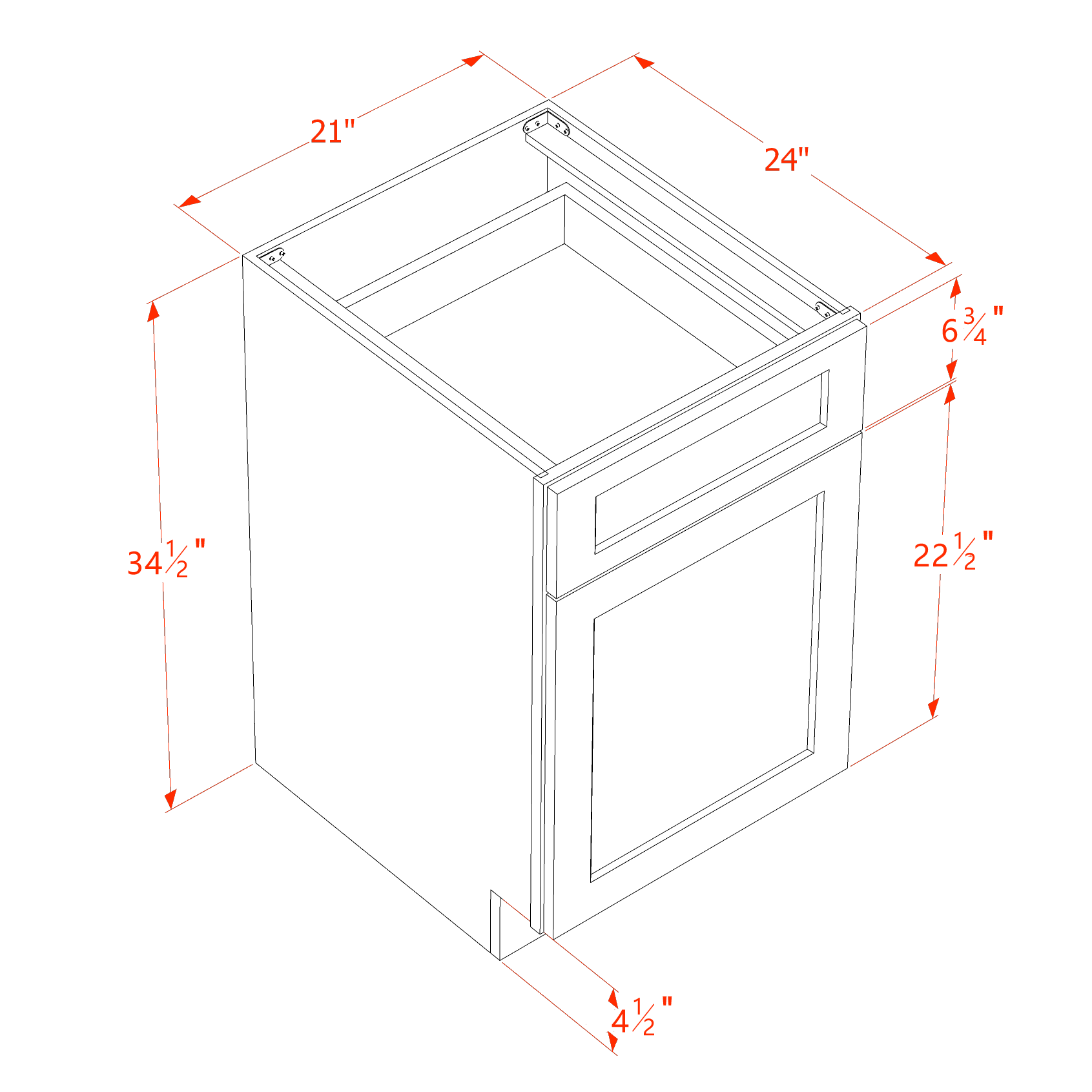 SM-B21: Mocha Brown Slim Shaker 21" 1 Drawer 1 Door Standard Base Cabinet