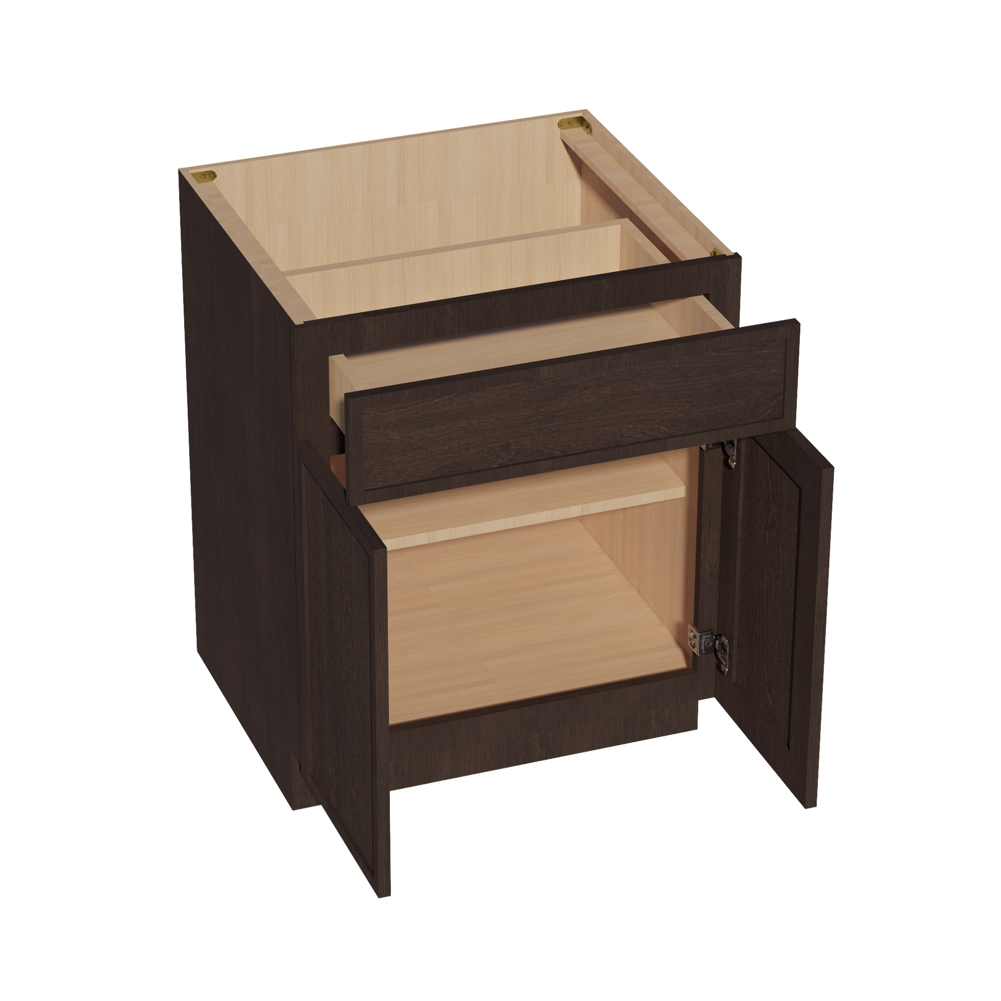 SM-B27: Mocha Brown Slim Shaker 27" 1 Drawer 2 Doors Standard Base Cabinet