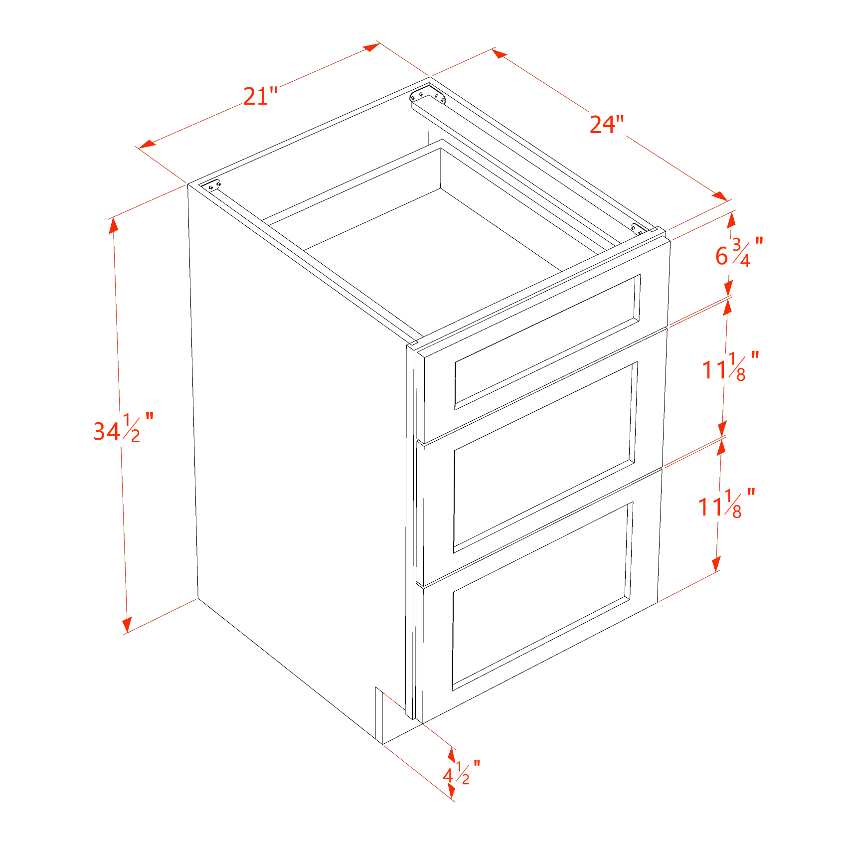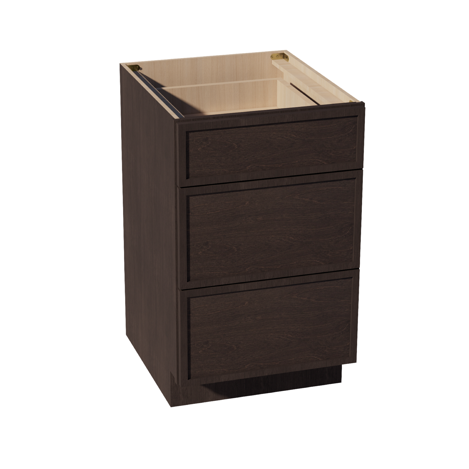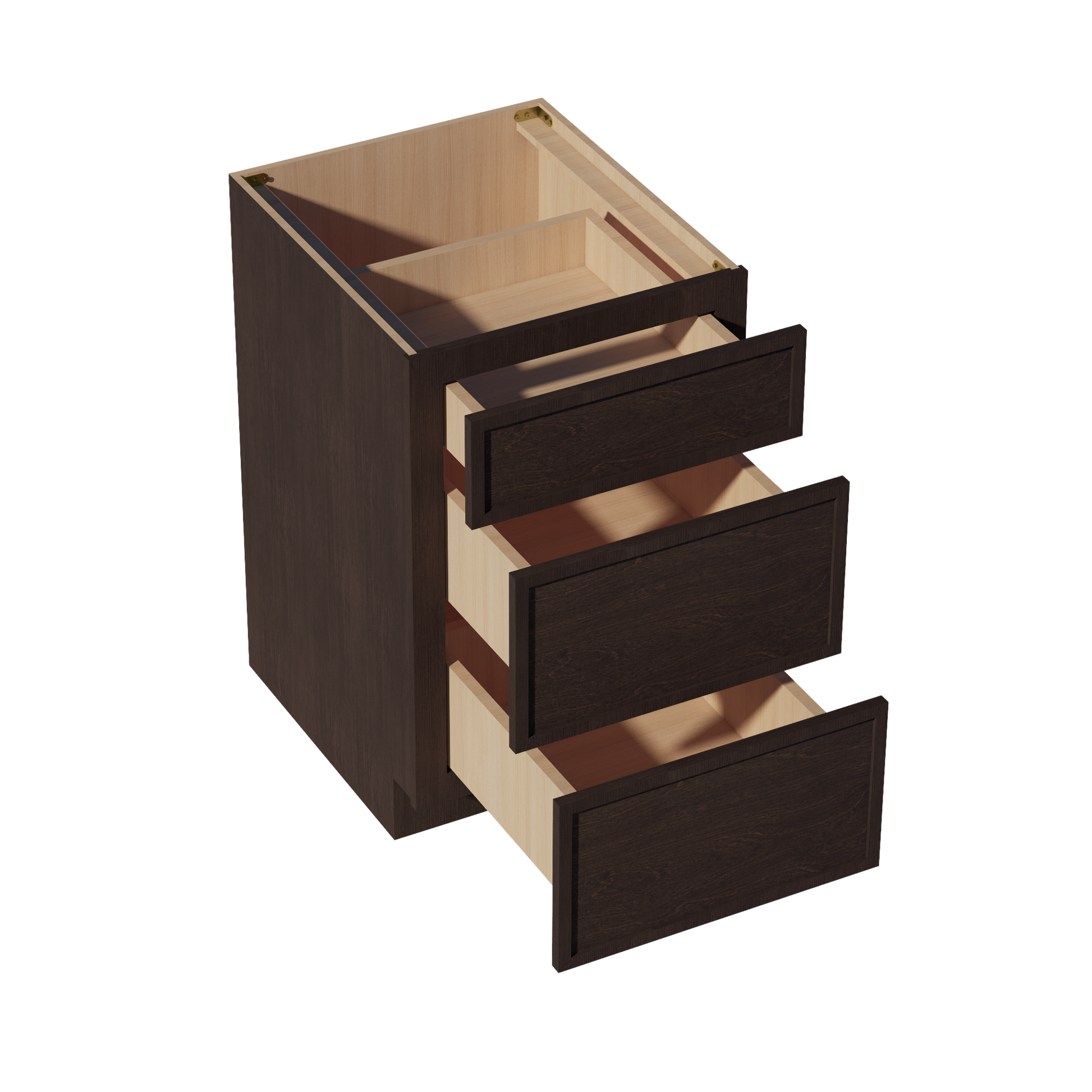 SM-DB21: Mocha Brown Slim Shaker 21" 3 Drawers Base Cabinet