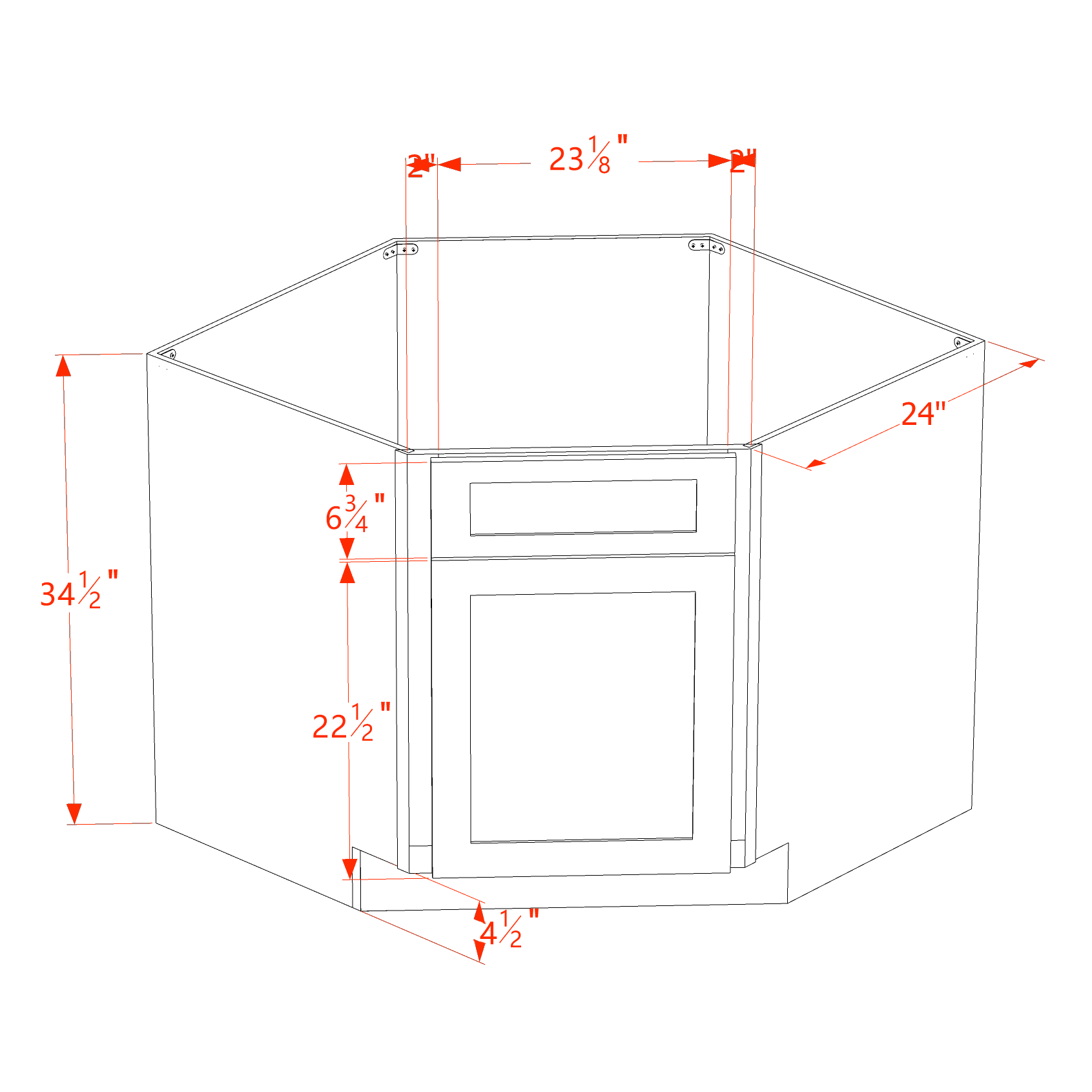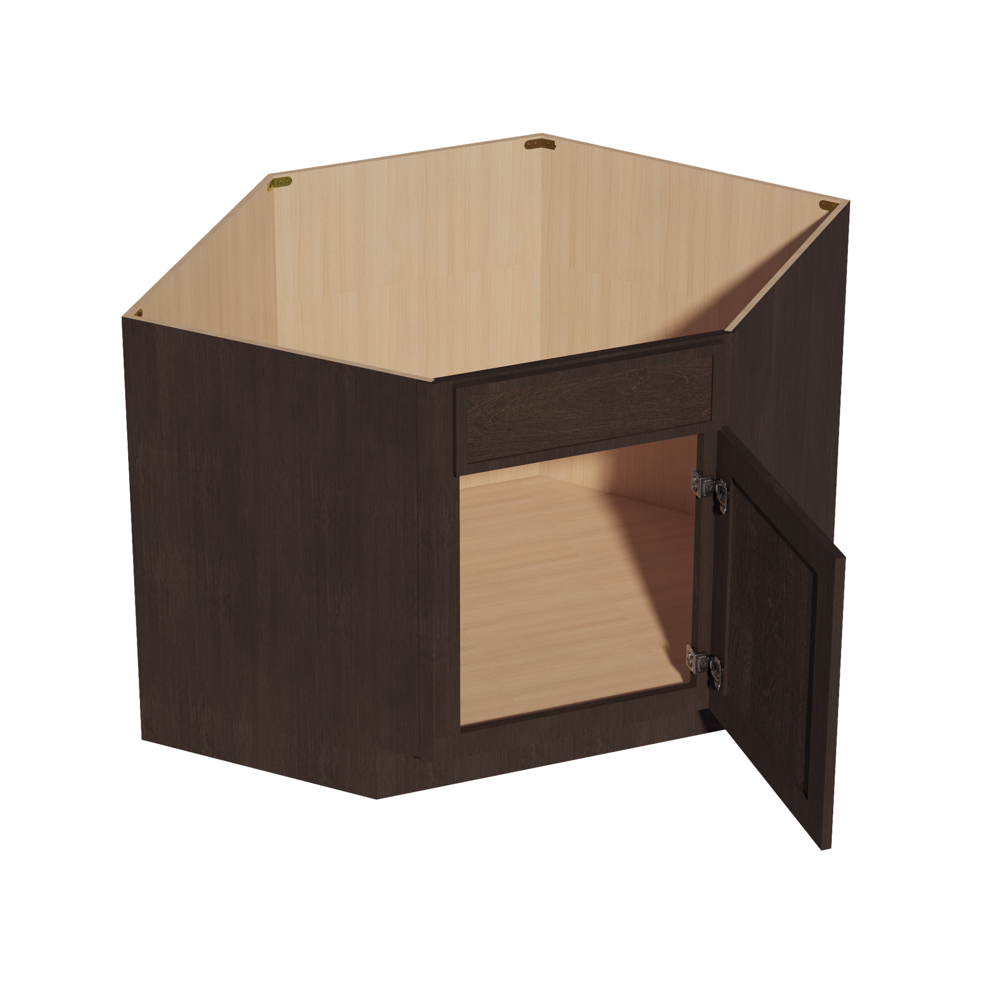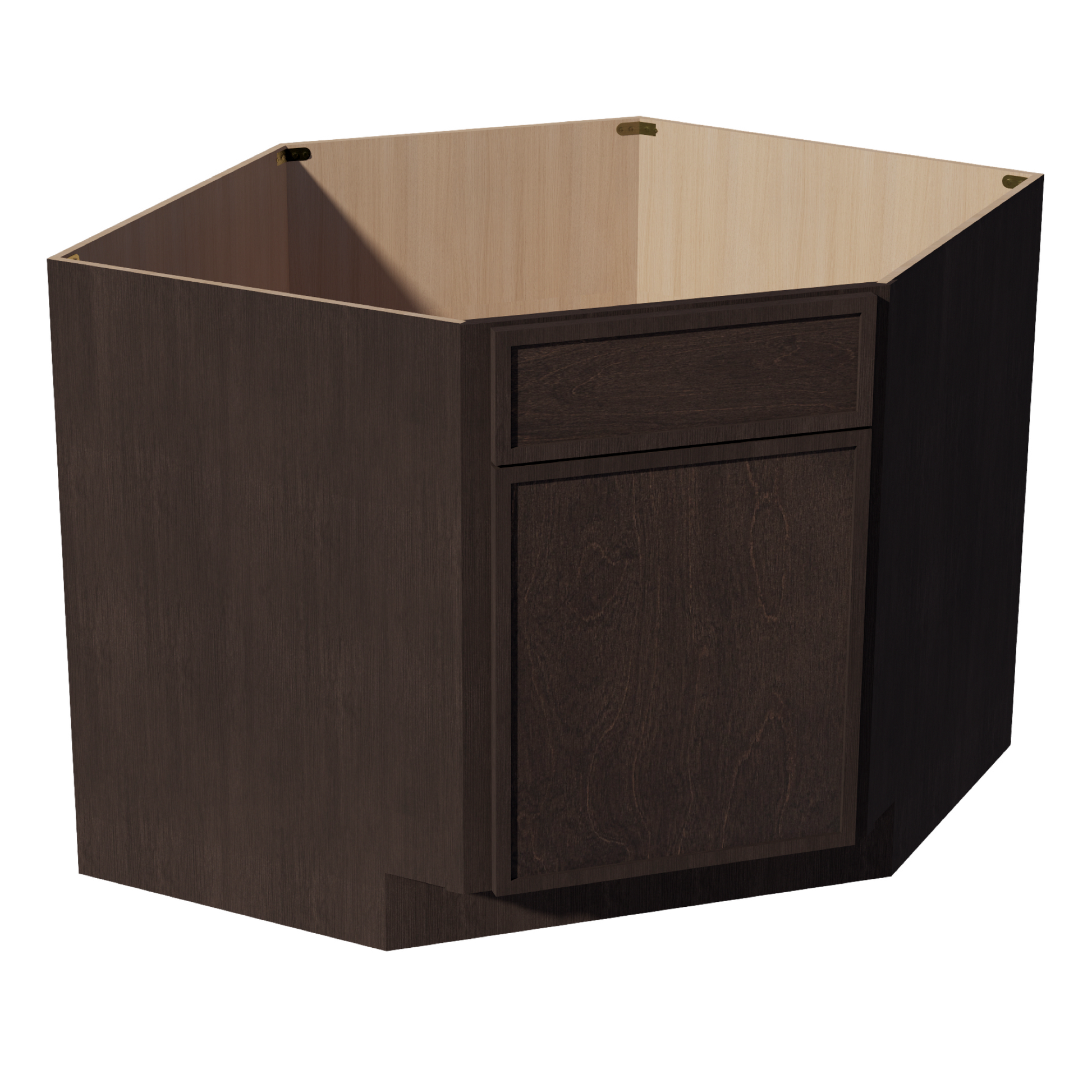 SM-DSB42: Mocha Brown Slim Shaker 42" 1 Door - 1 False Drawer Corner Sink Base Cabinets