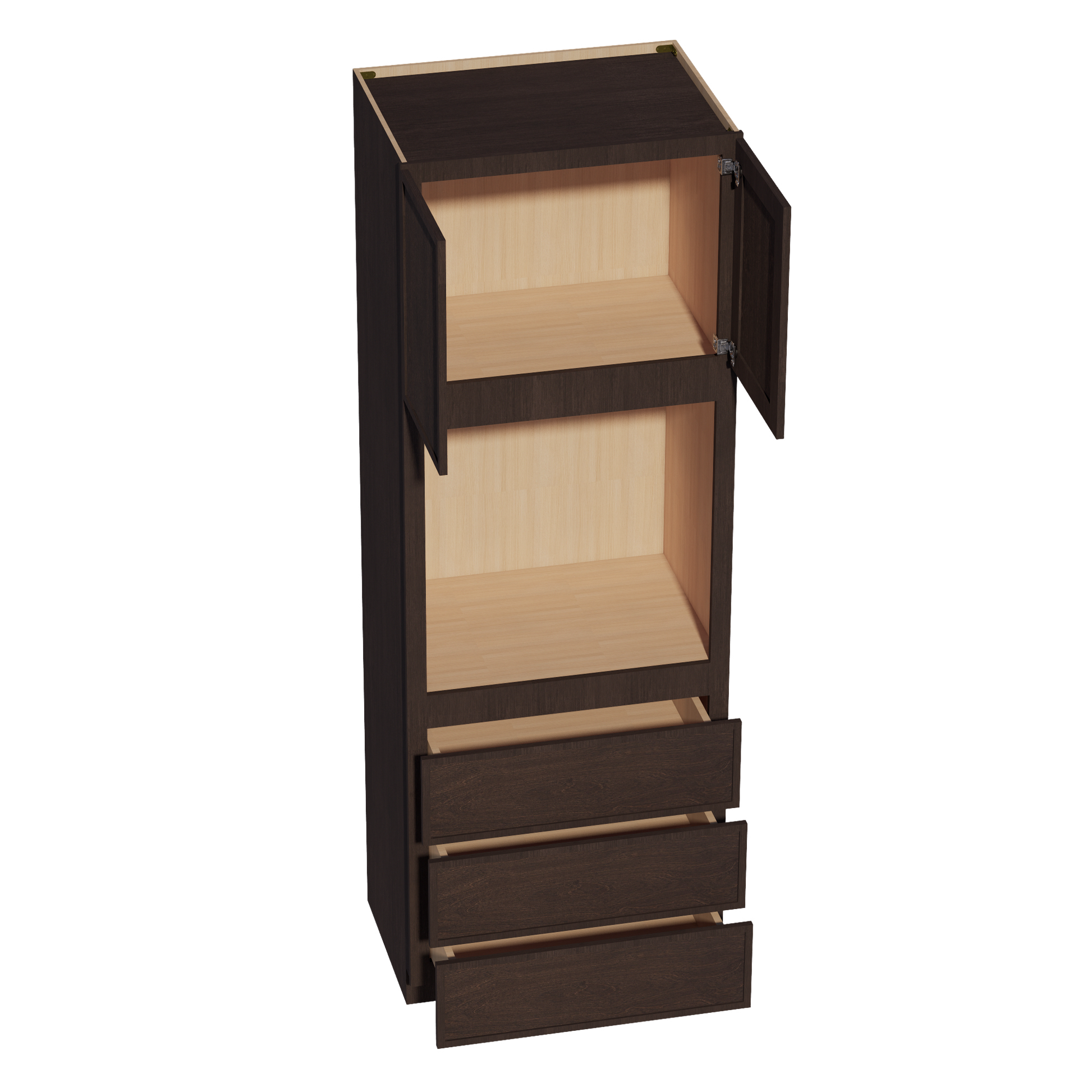 SM-OC3396: Mocha Brown Slim Shaker 33"W x 96"H x 24"D 2 Doors & 3 Drawers Tall Oven Shelf Cabinets