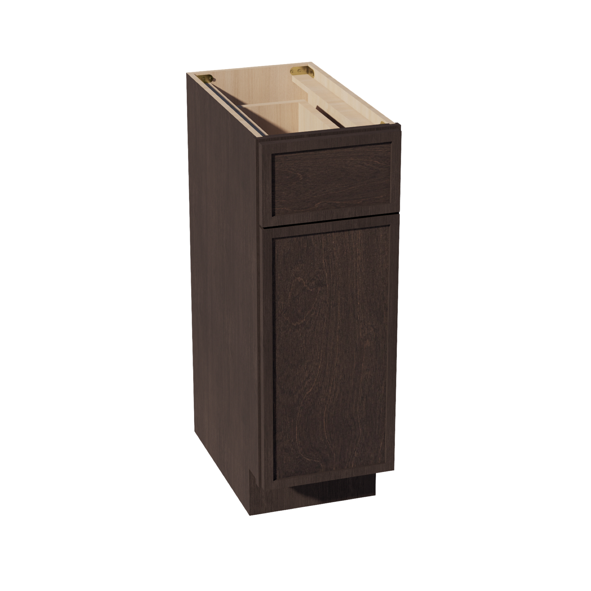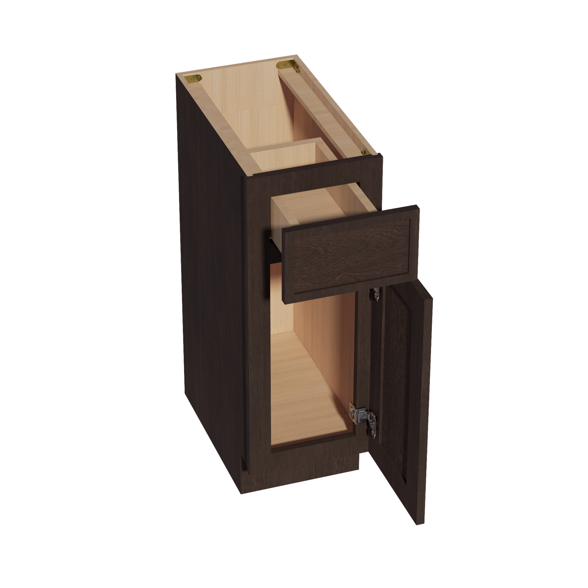 SM-VB1221: Mocha Brown Slim Shaker 12"W x 34-1/2"H x 21"D 1 Door & 1 Drawer Single Door Vanity Base Cabinets