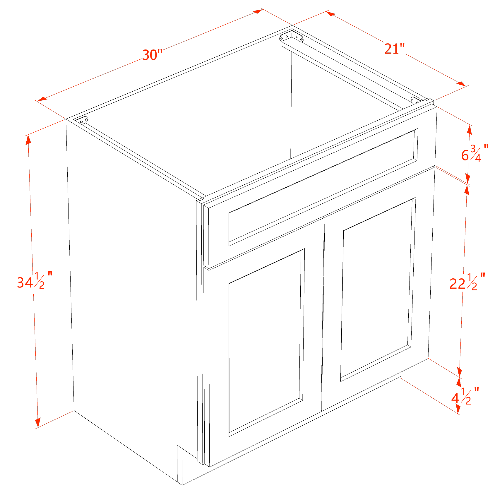 TG-VSB3021: Soft Green Shaker 30"W x 34-1/2"H x 21"D 2 Doors & 1 False Drawer Vanity Sink Base Cabinets