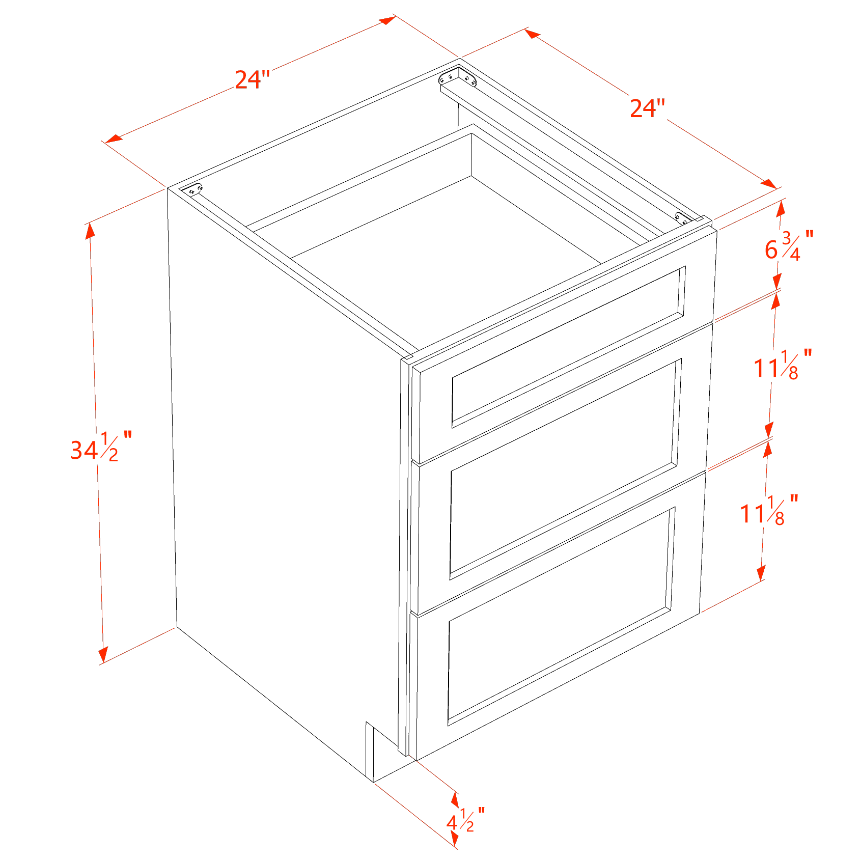TW-DB24: Creamy White Shaker 24" 3 Drawers Base Cabinet