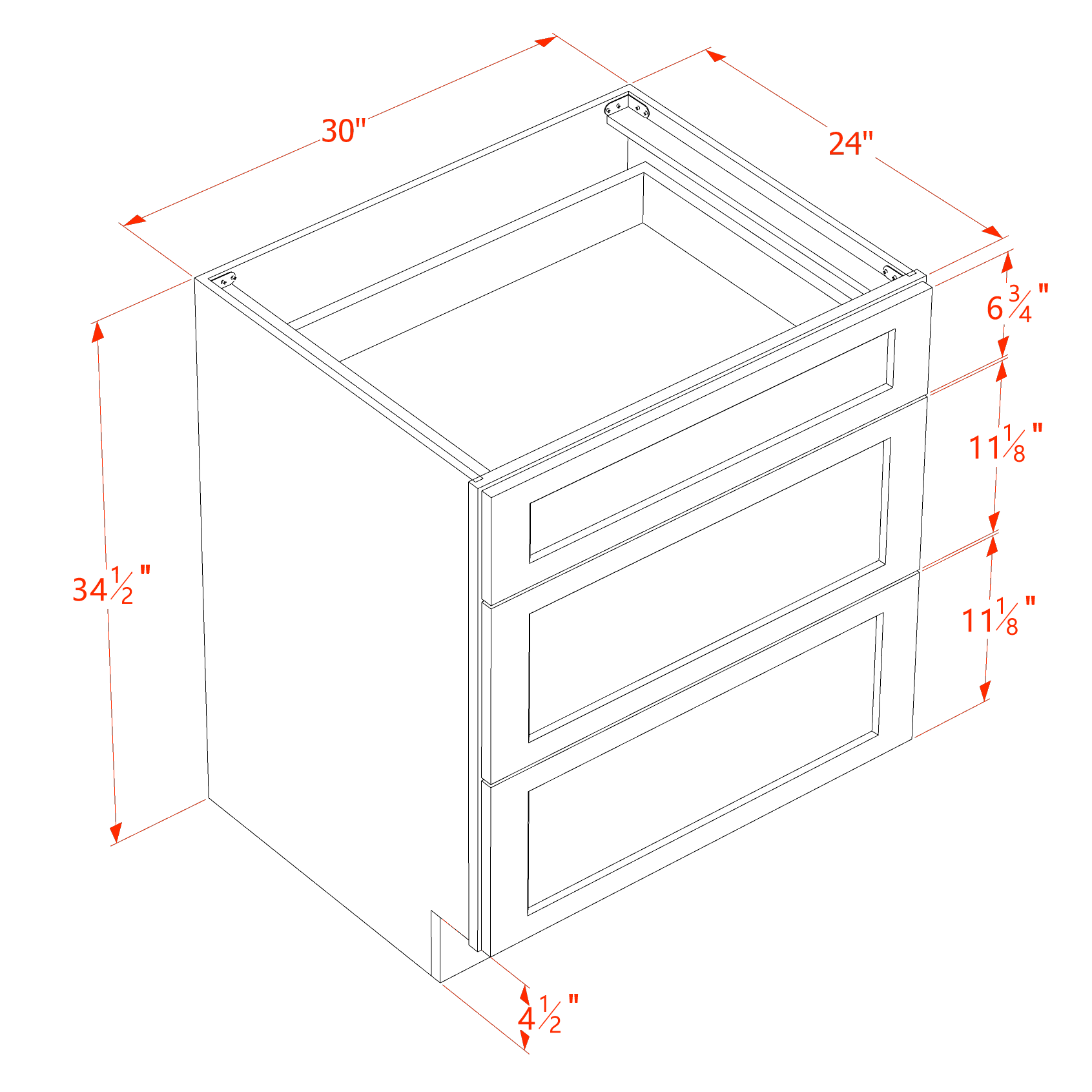 TW-DB30: Creamy White Shaker 30" 3 Drawers Base Cabinet