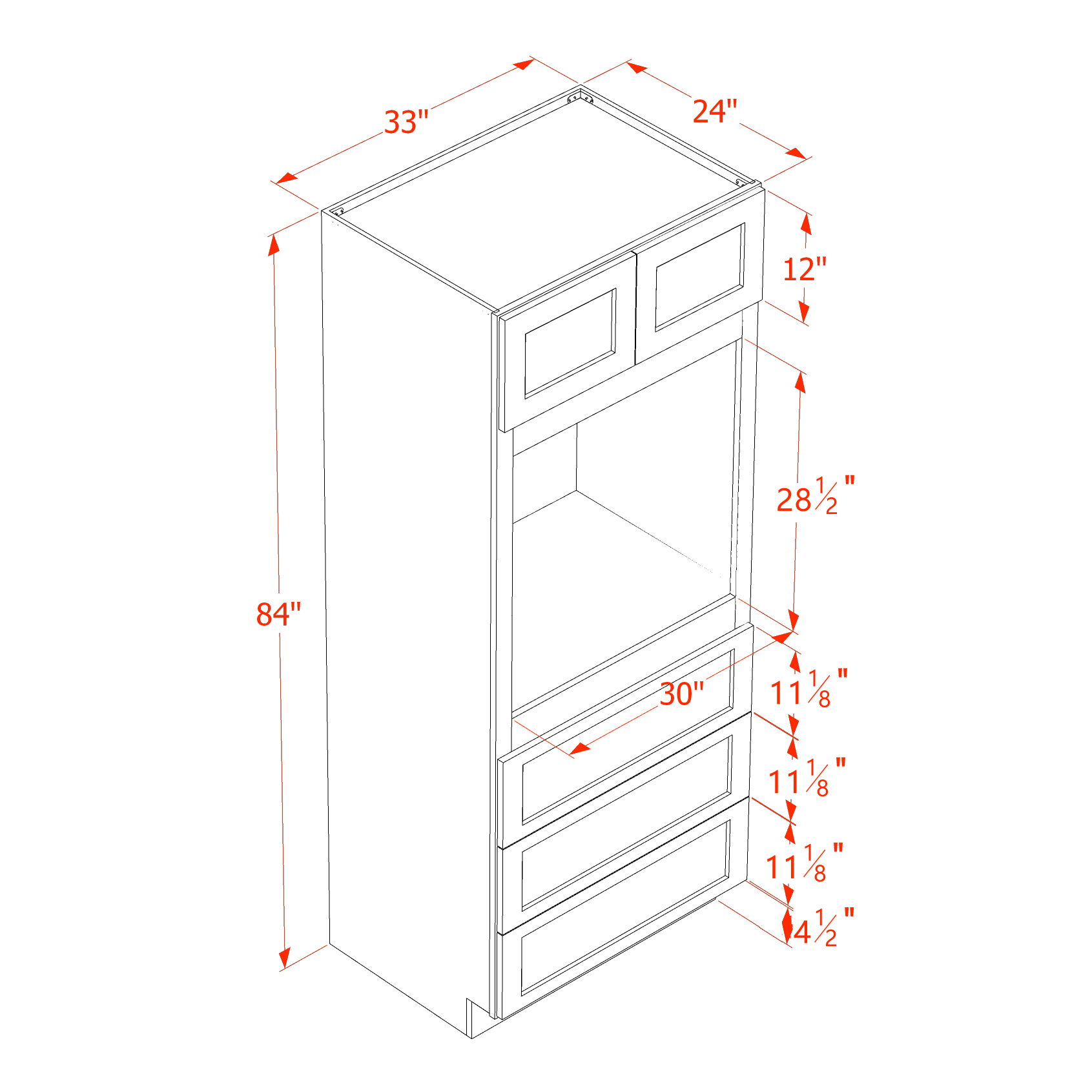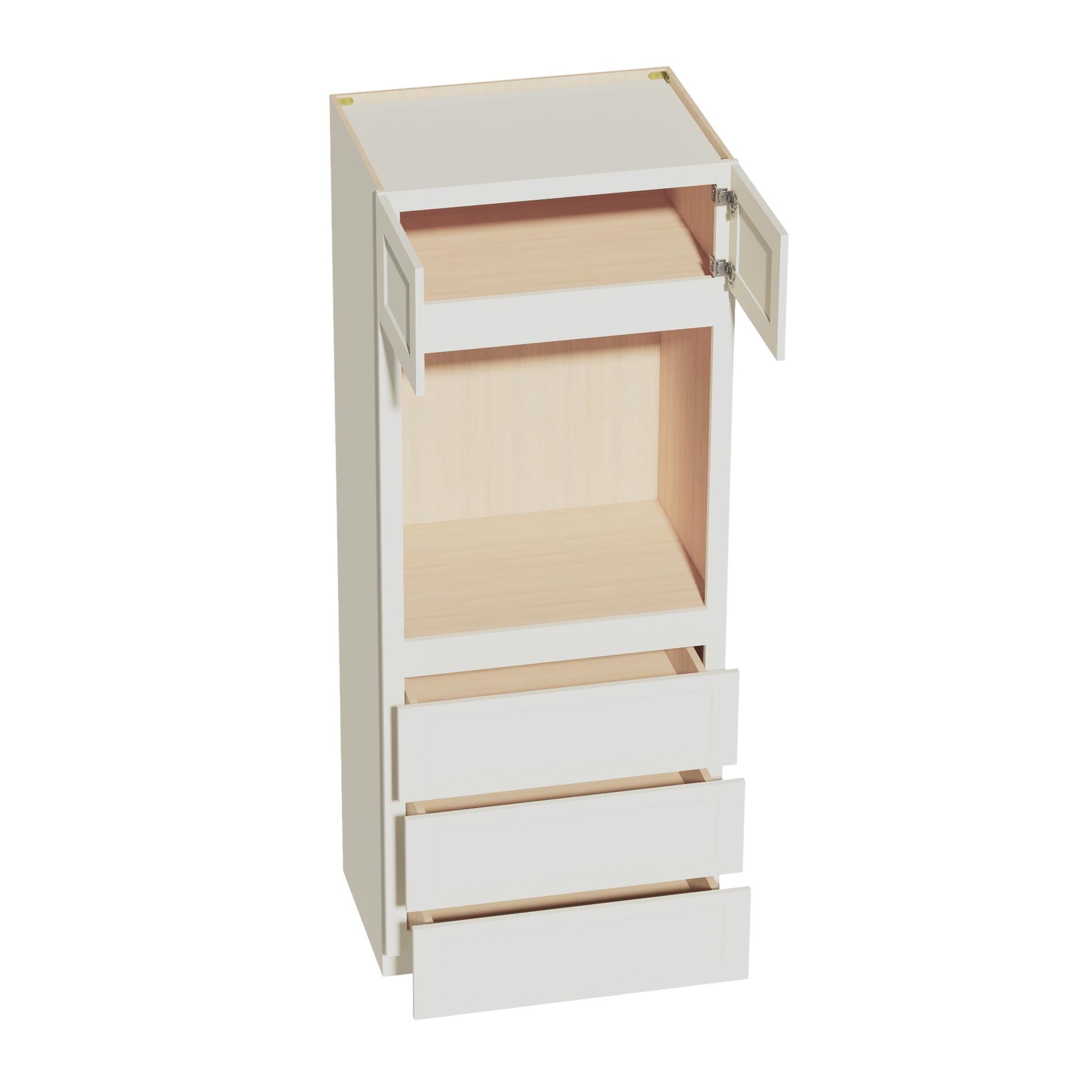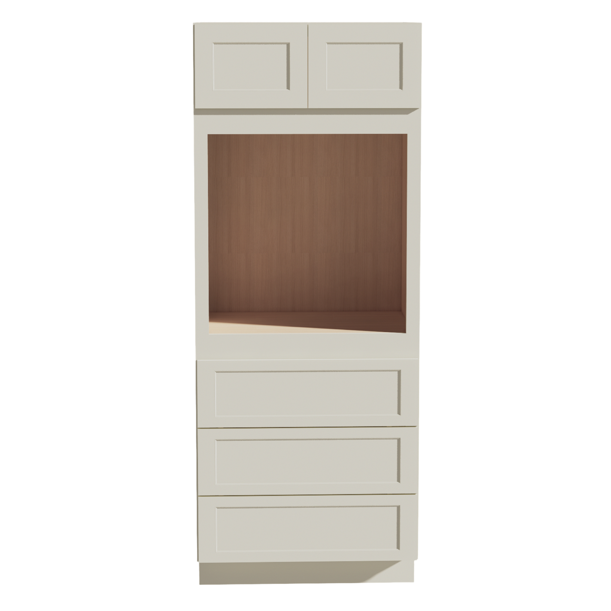 TW-OC3384: Creamy White Shaker 33"W x 84"H x 24"D 2 Doors & 3 Drawers Tall Oven Shelf Cabinets