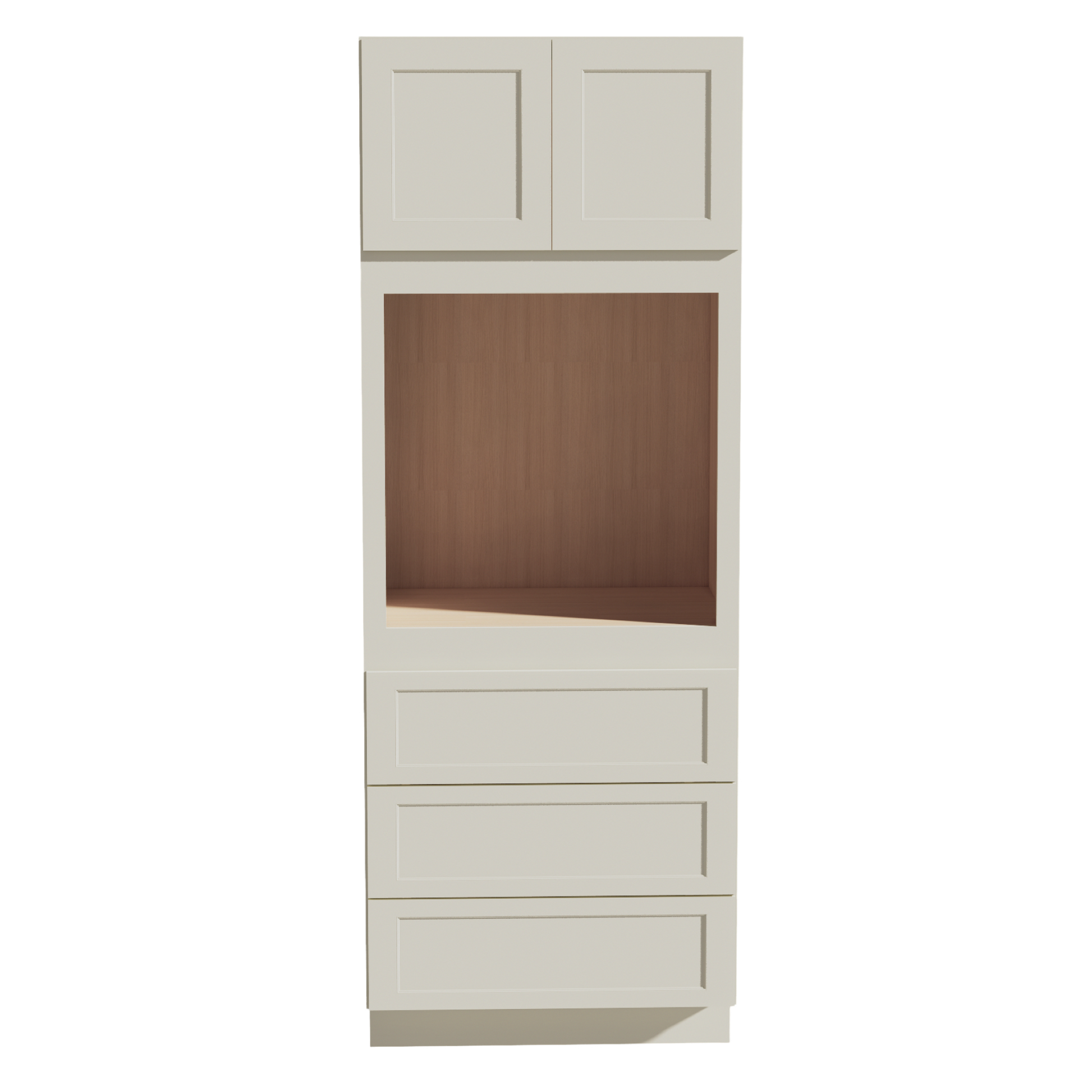TW-OC3390: Creamy White Shaker 33"W x 90"H x 24"D 2 Doors & 3 Drawers Tall Oven Shelf Cabinets