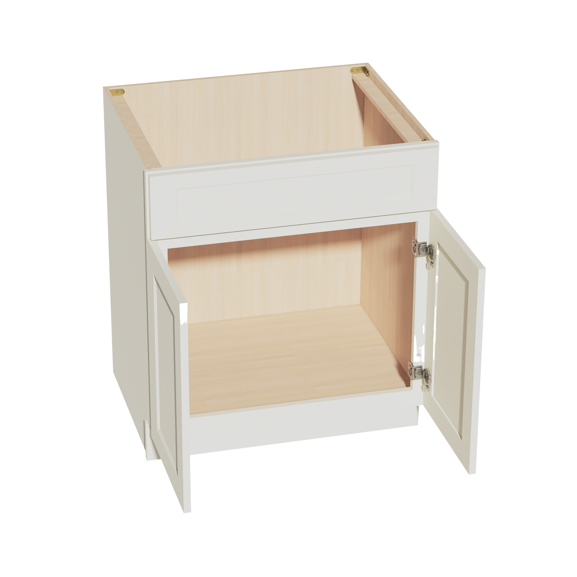 TW-SB30: Creamy White Shaker 30" 2 Doors 1 False Drawer Sink Base Cabinet
