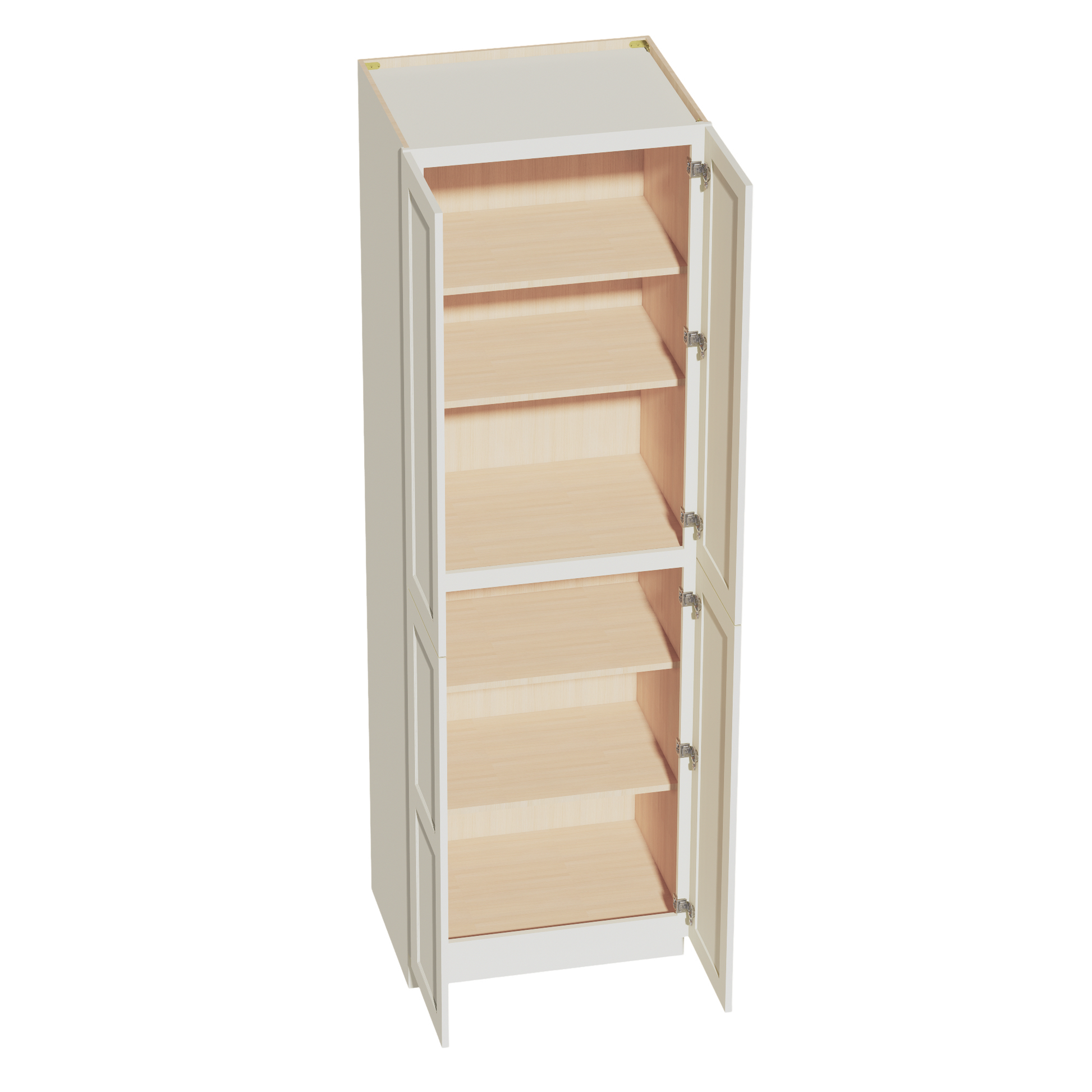 TW-TP3096: Creamy White Shaker 30"W x 96"H x 24"D 2 Doors & 6 Shelves Tall Shelf Pantry Cabinets