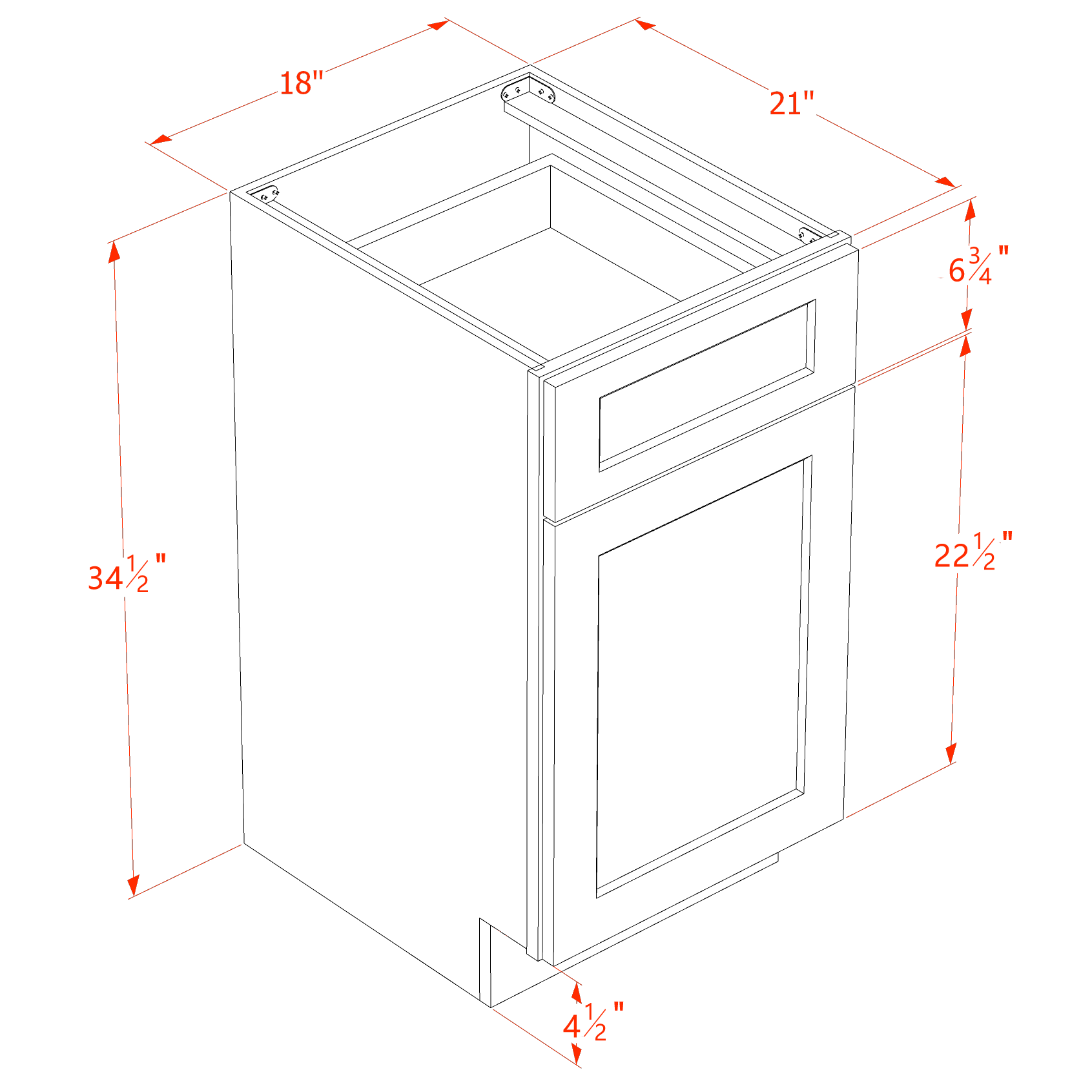 TW-VB1821: Creamy White Shaker 18"W x 34-1/2"H x 21"D 1 Door & 1 Drawer Single Door Vanity Base Cabinets