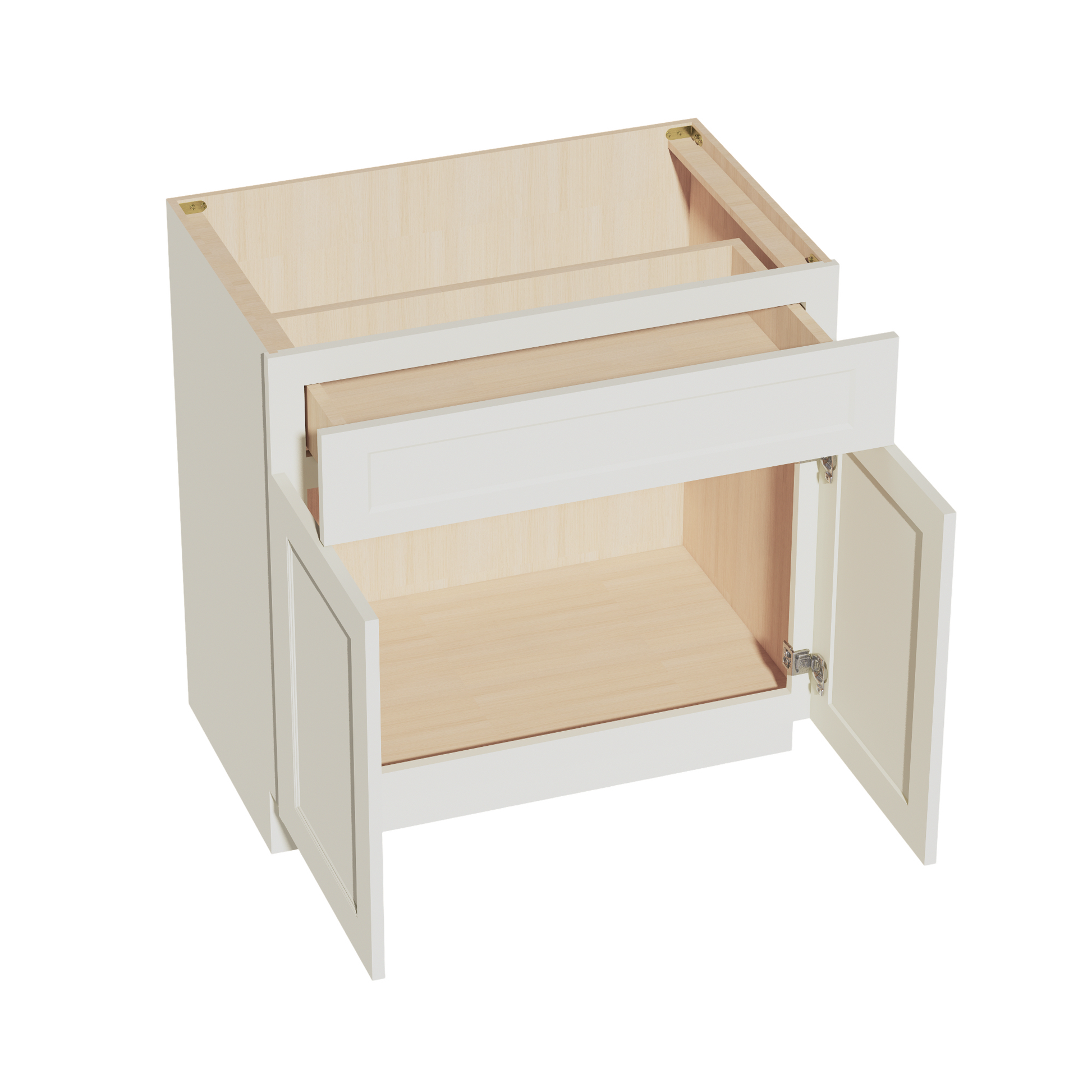 TW-VB3321: Creamy White Shaker 33"W x 34-1/2"H x 21"D 2 Doors & 1 Drawer Double Door Vanity Base Cabinets