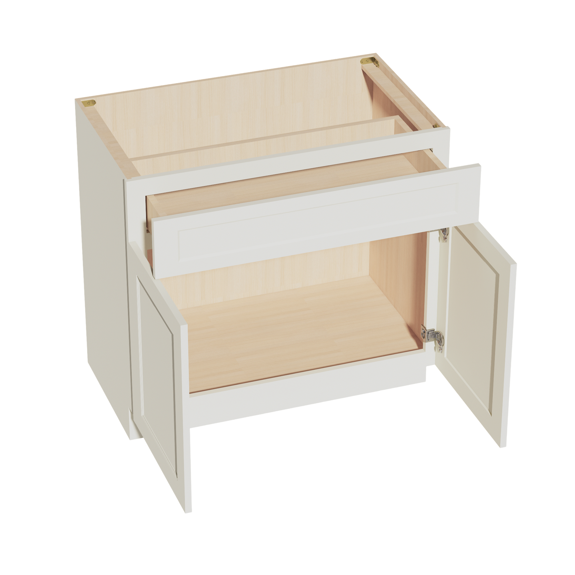 TW-VB3621: Creamy White Shaker 36"W x 34-1/2"H x 21"D 2 Doors & 1 Drawer Double Door Vanity Base Cabinets
