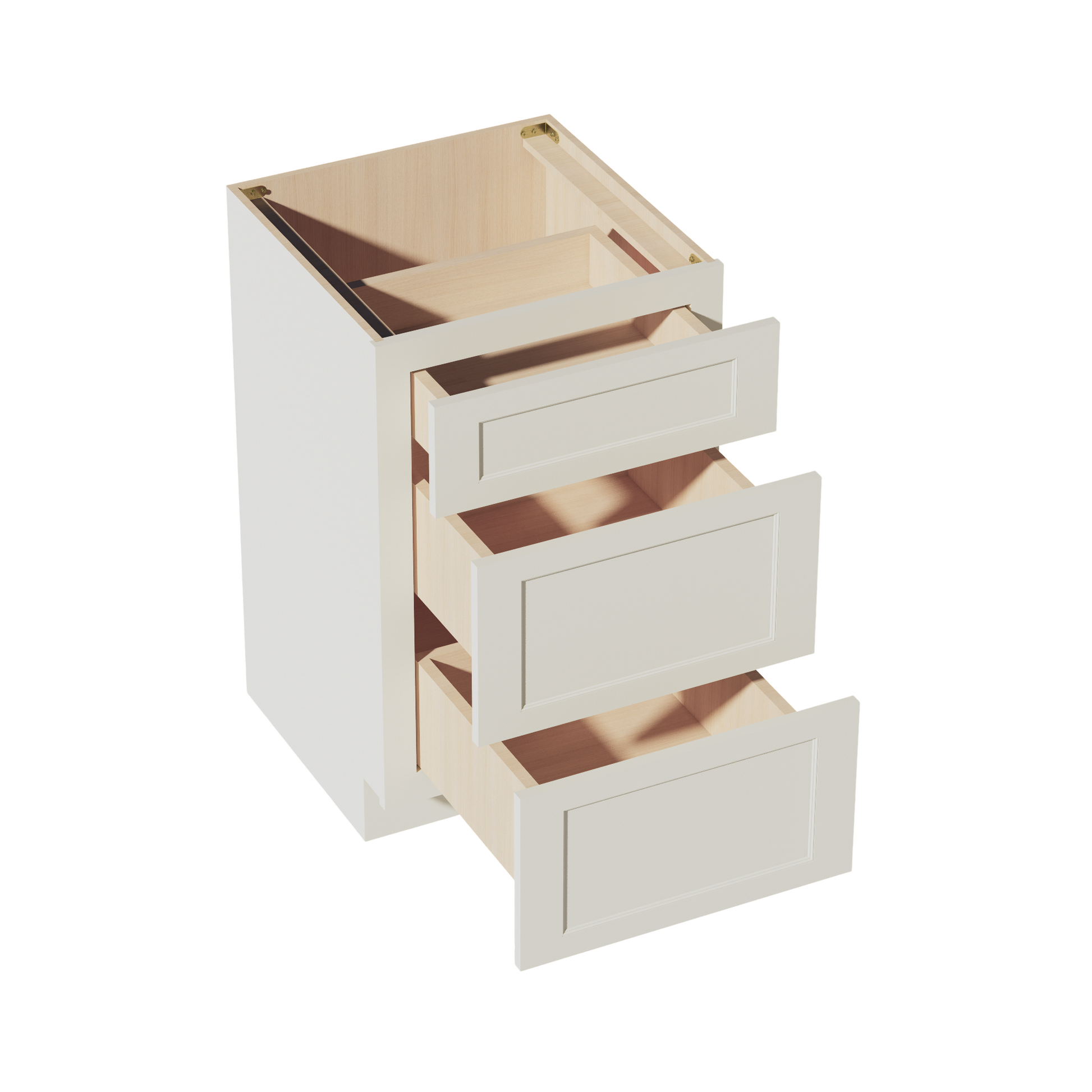 TW-VDB2121: Creamy White Shaker 21"W x 34-1/2"H x 21"D 3 Drawers Vanity Base Cabinets