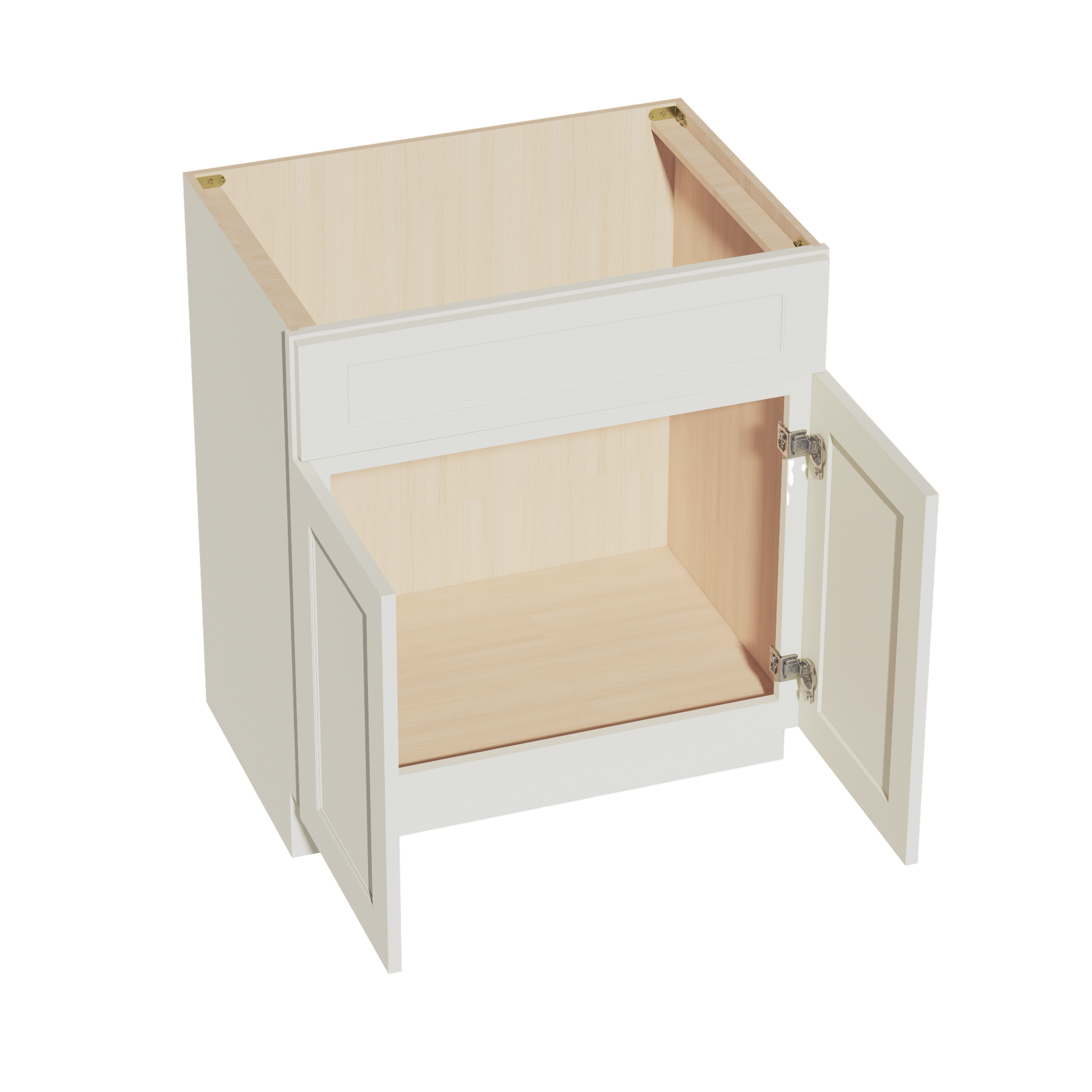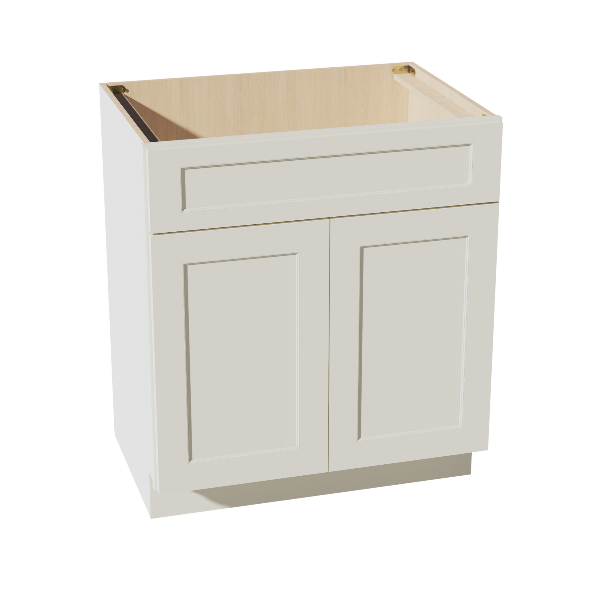 TW-VSB3021: Creamy White Shaker 30"W x 34-1/2"H x 21"D 2 Doors & 1 False Drawer Vanity Sink Base Cabinets
