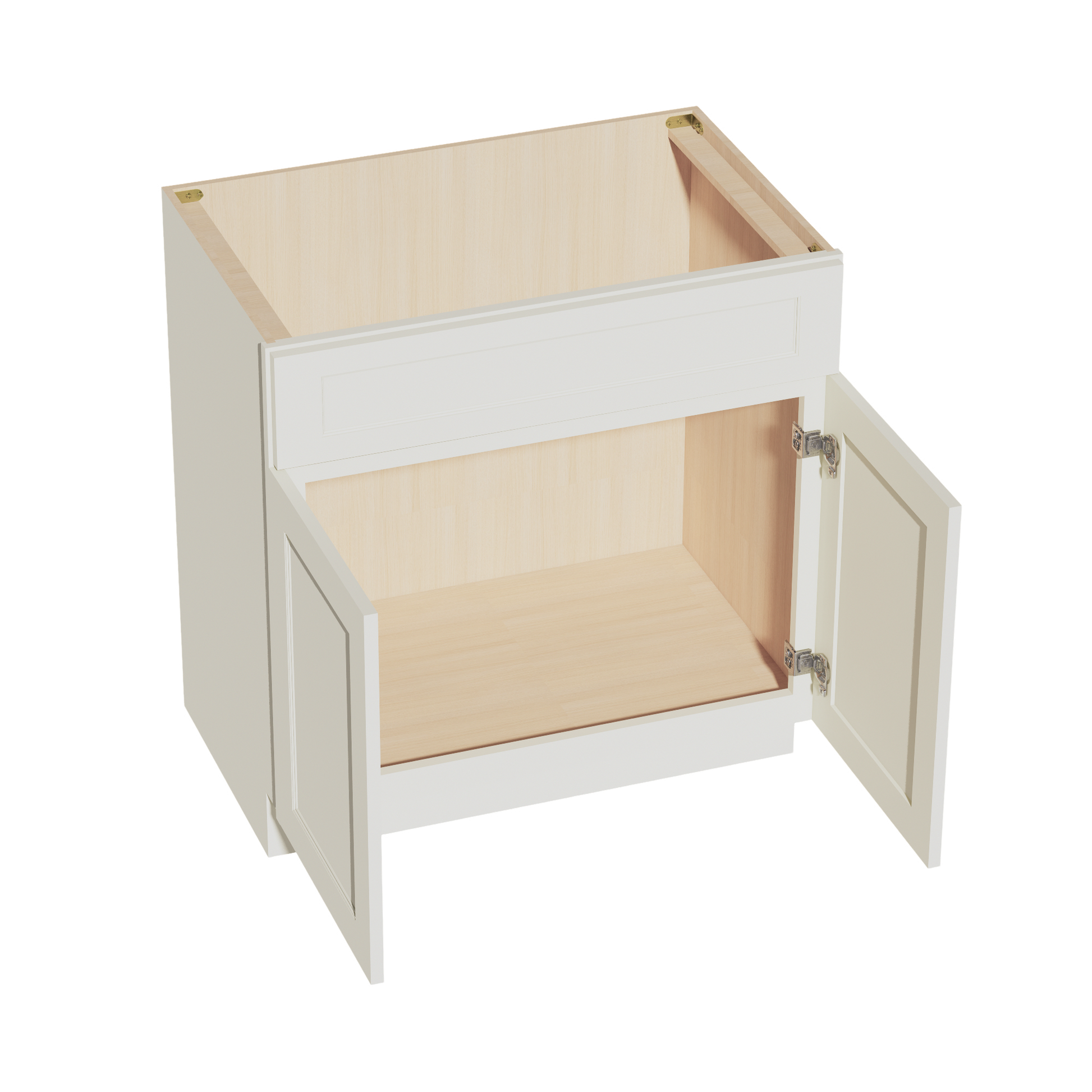 TW-VSB3321: Creamy White Shaker 33"W x 34-1/2"H x 21"D 2 Doors & 1 False Drawer Vanity Sink Base Cabinets