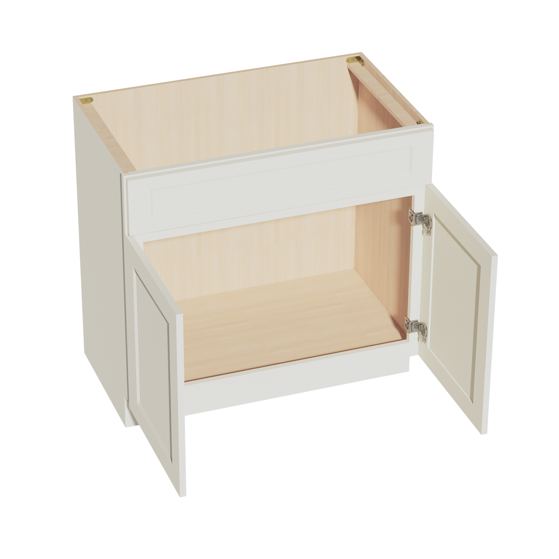 TW-VSB3621: Creamy White Shaker 36"W x 34-1/2"H x 21"D 2 Doors & 1 False Drawer Vanity Sink Base Cabinets