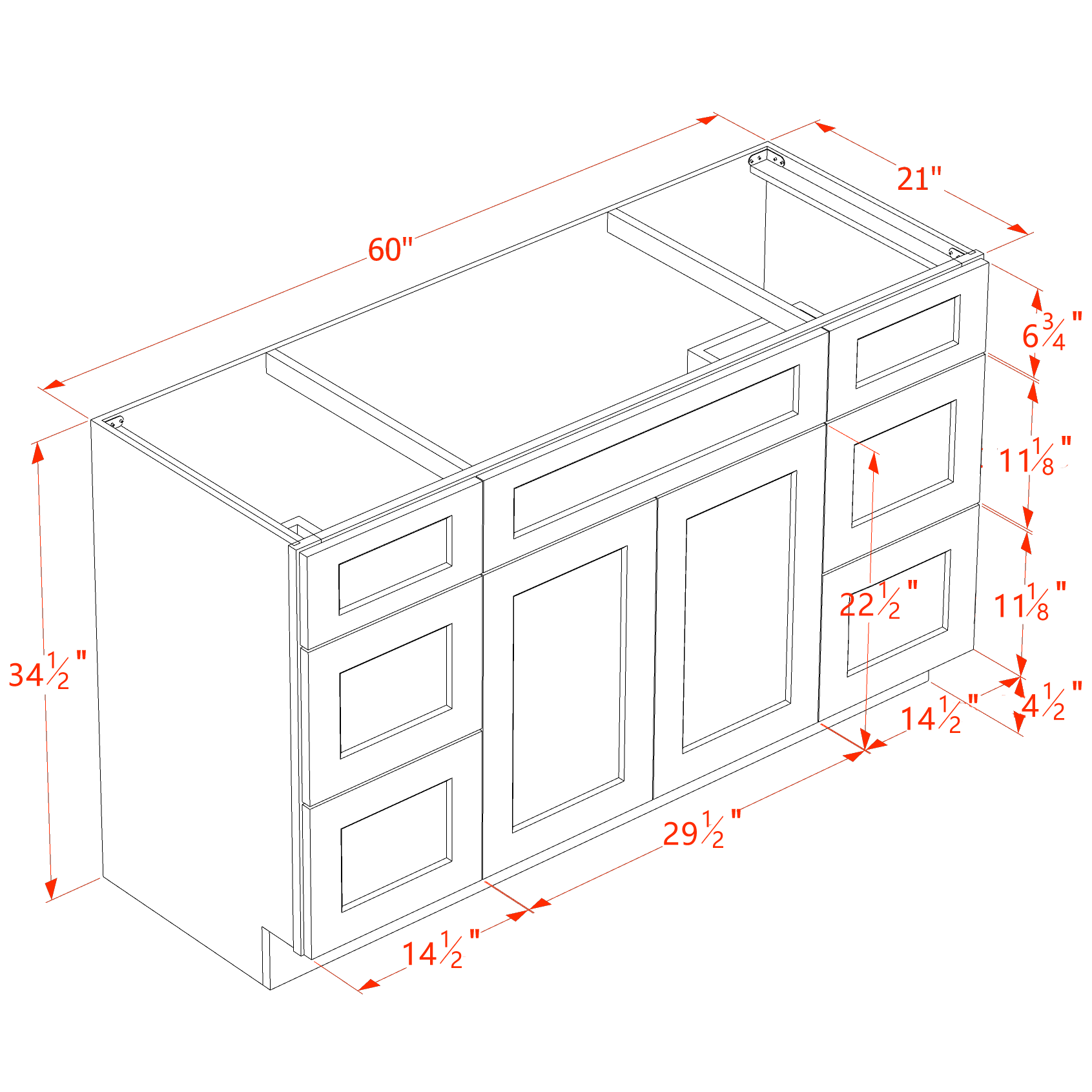 - Dimensions: 60"W x 34-1/2"H x 21"D