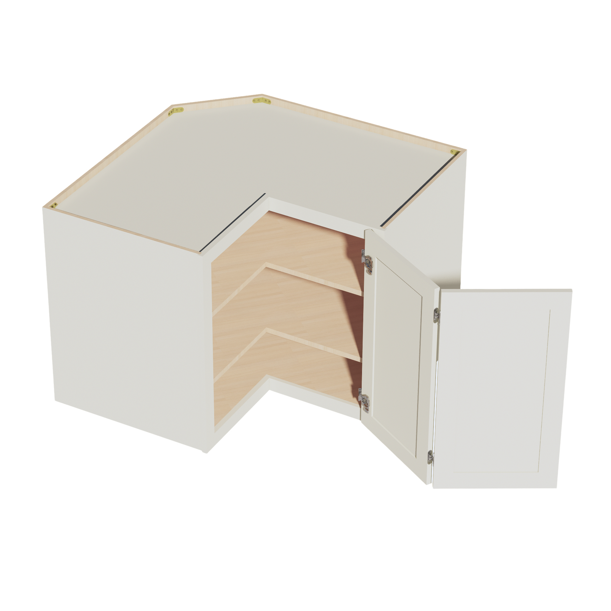 TW-WPC2430: Creamy White Shaker 24"W x 30"H 1 Door & 2 Shelves Pie Cut Wall Corner Cabinet